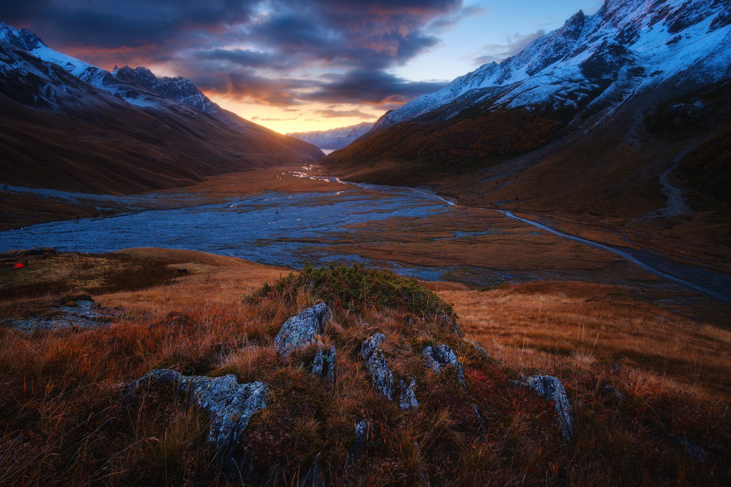 россия, кавказ, северная осетия, горы, ущелье, дигория, рассвет, сумерки, природа, хребет, скалы, небо, река, ледник, болото, Оборотов Алексей