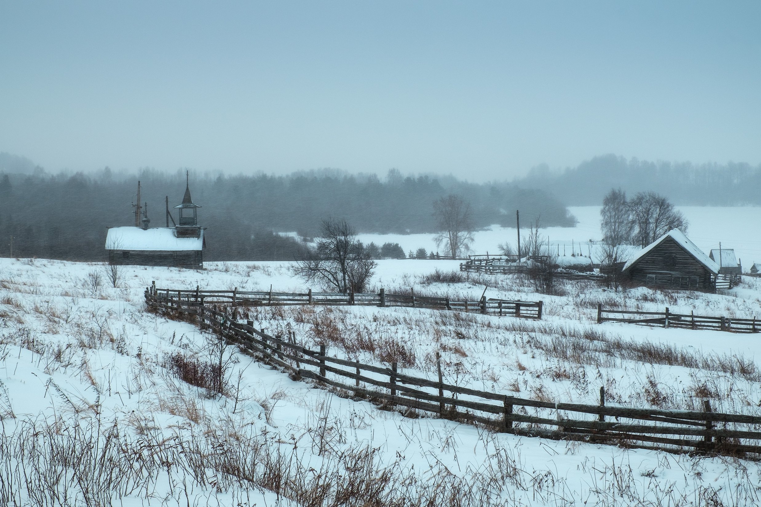 Деревня Карпова - одна из самых маленьких в Плесецком секторе заповедника Кенозерье. В ней порядка 20 домов, а зимой там и вовсе живет всего 1 семья. Регулярной дороги к деревне нет. Добраться можно или пешком (желательно на лыжах или снегоступах) или на снегоходе. Благо, расстояние от "цивилизации" в районе 4 км. Вместе с тем, деревня оказалась одним из самых интересных мест для съемки. В ней почти нет объектов, выбивающихся из общей канвы древнерусской архитектуры, что в большой степени добавляет аутентичности пейзажу.