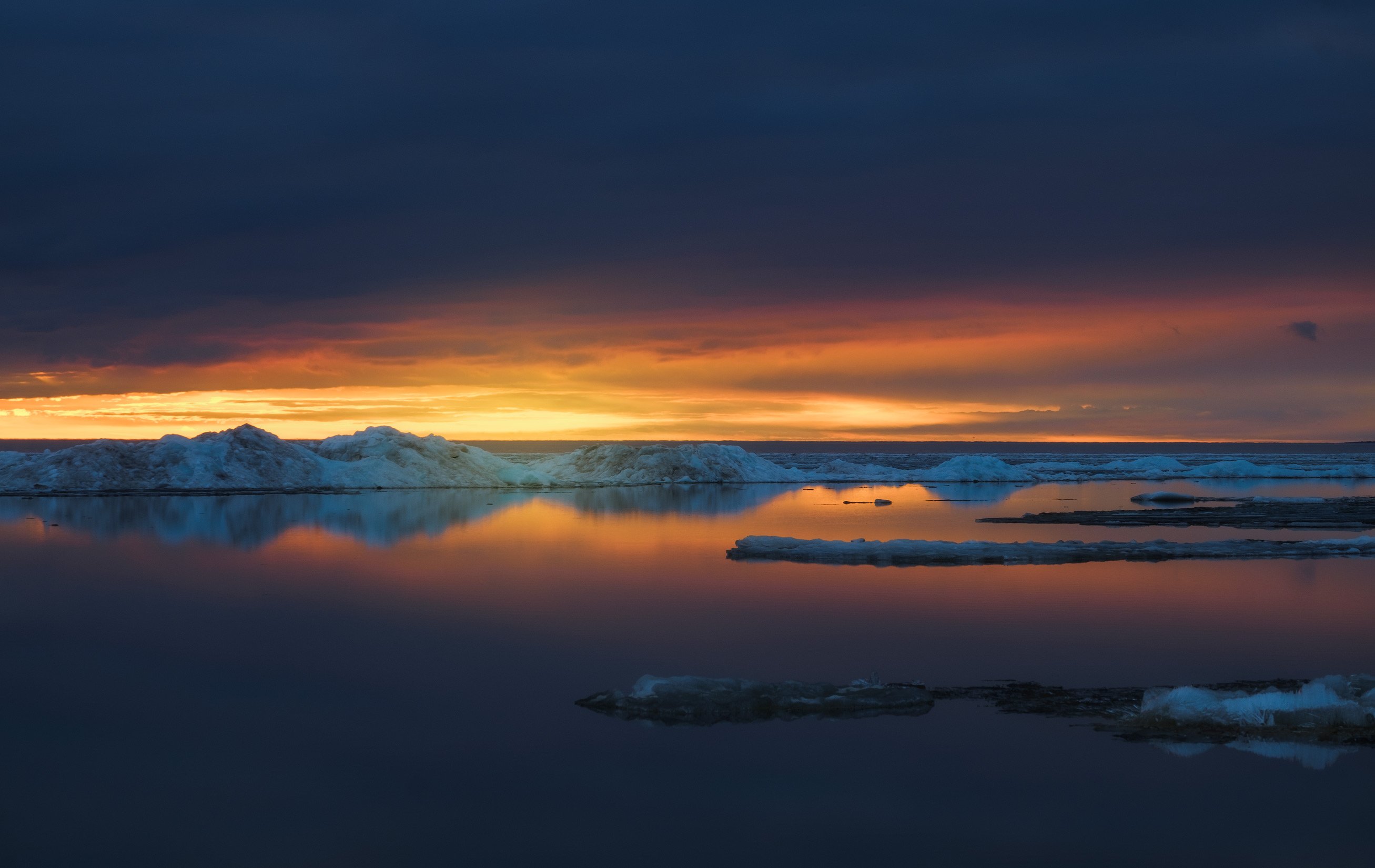 россия, ярославская область, рыбинское водохранилище, ледоход, лед, весна, озеро, закат, пейзаж, природа, Оборотов Алексей