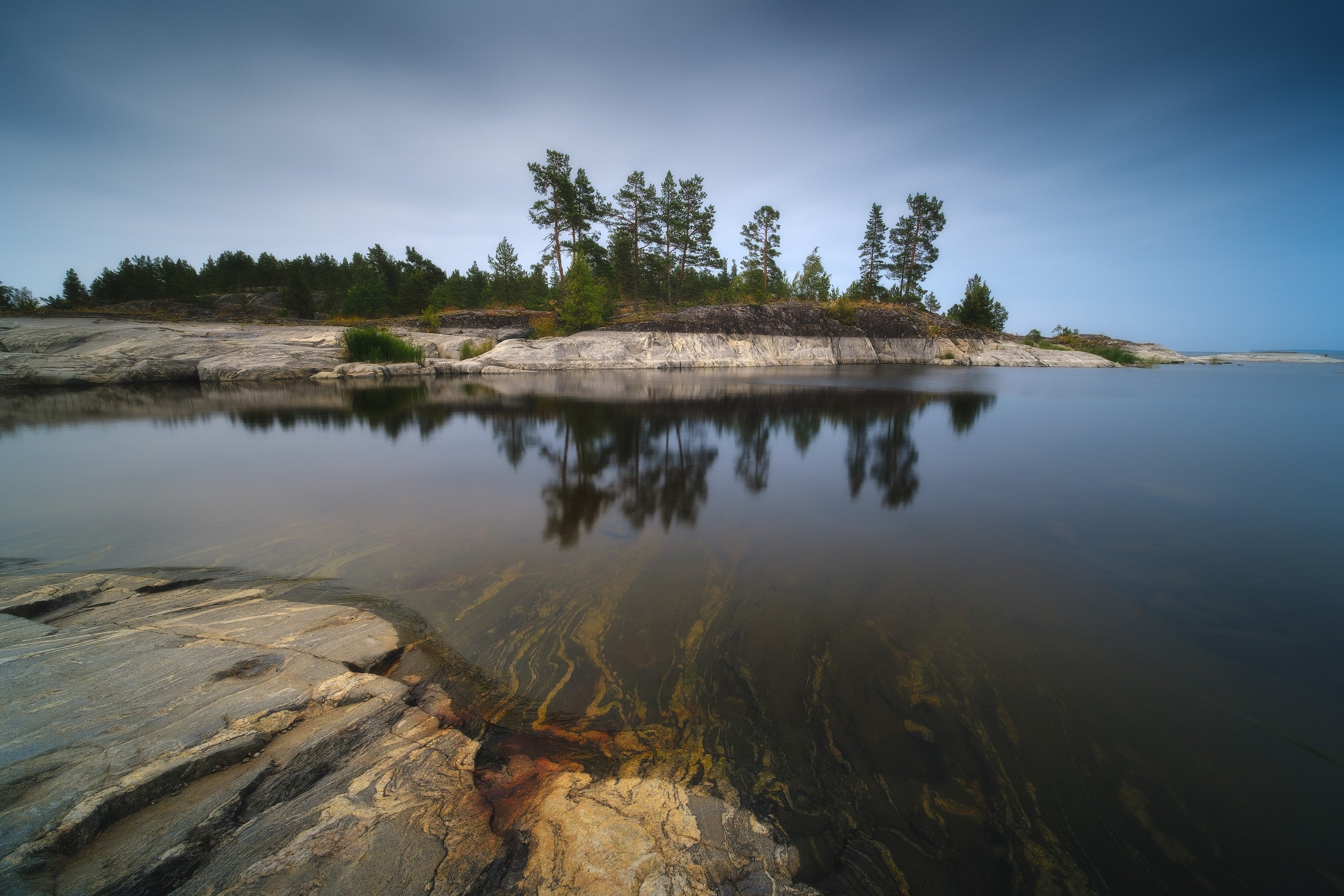 россия, карелия, ладога, ладожские шхеры, ладожское озеро, природа, пейзаж, лето, север, закат, озеро, тайга, отражения, скалы, заход солнца, Оборотов Алексей