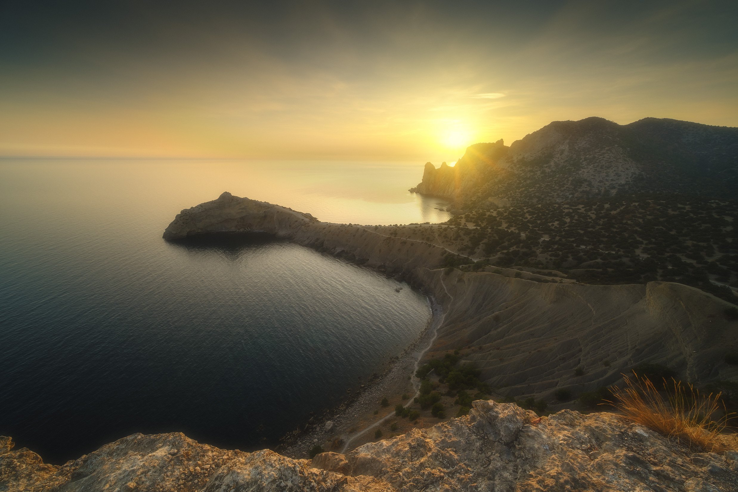 россия, крым, новый свет, полуостров, черное море, природа, пейзаж, осень, бухта, вода, закат, можжевельник, заход солнца, горы, мыс, Оборотов Алексей