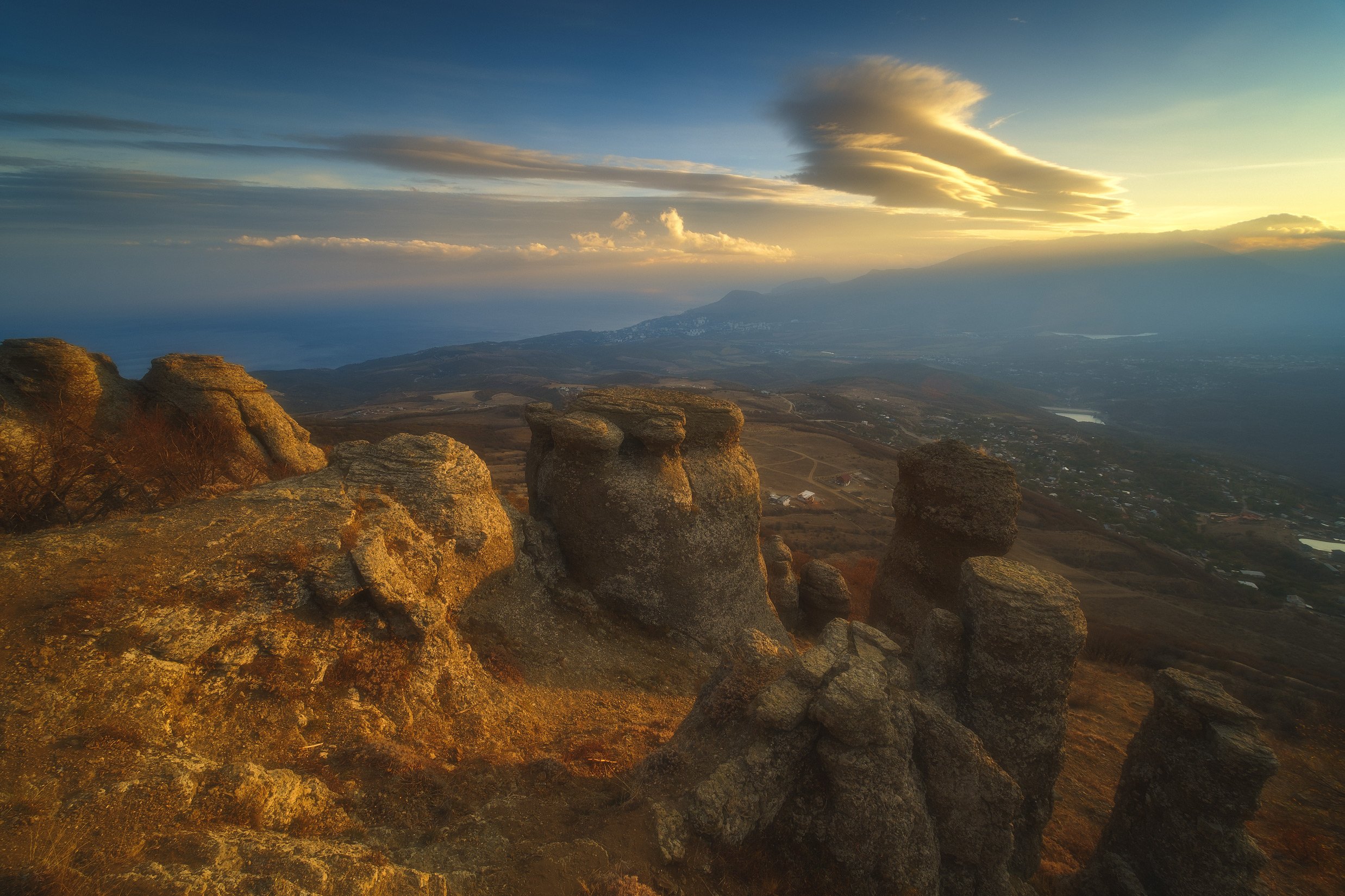россия, крым, демерджи, полуостров, черное море, природа, пейзаж, осень, бухта, облака, вечер, закат, заход солнца, сумерки, горы, Оборотов Алексей