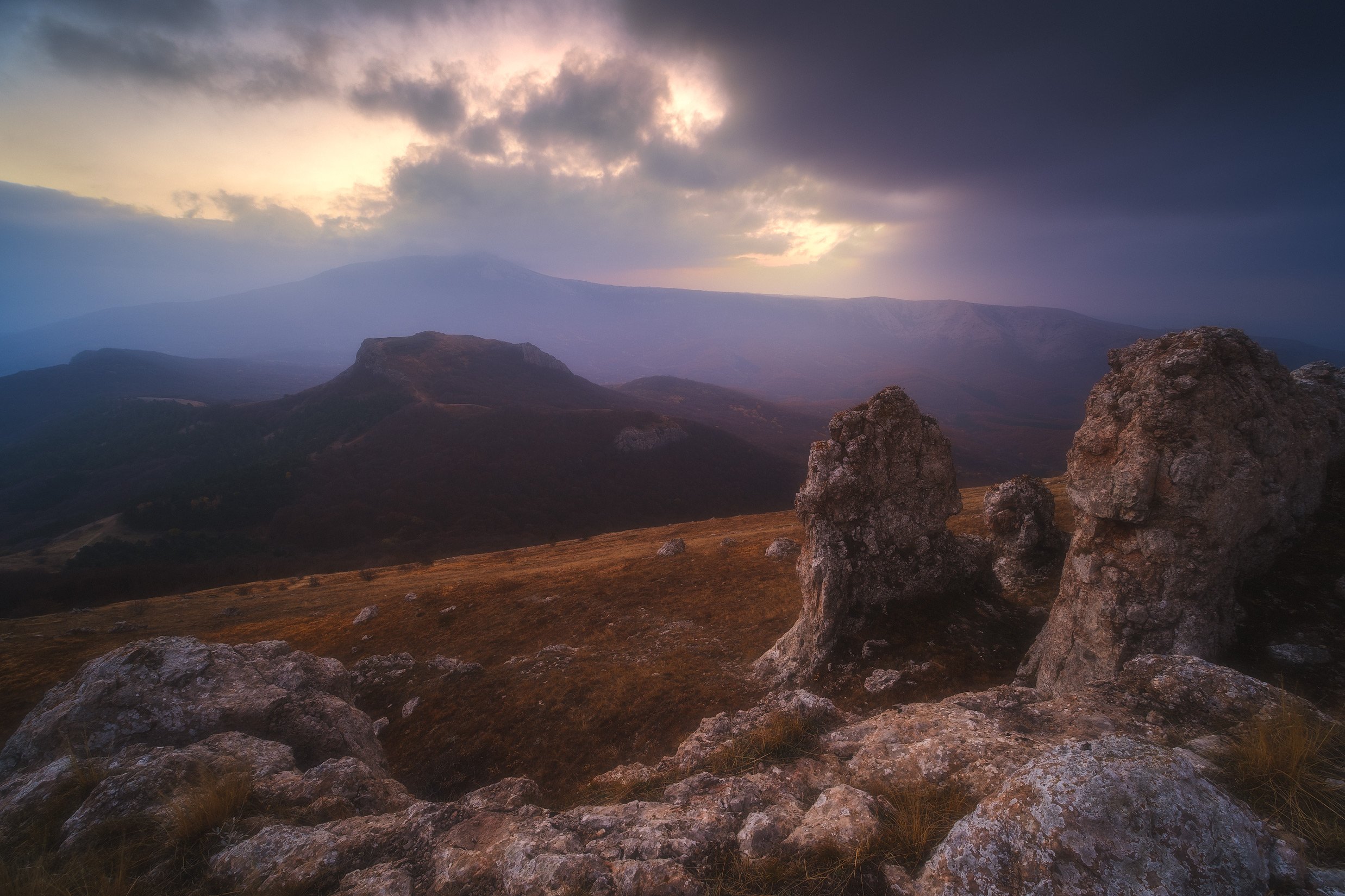 россия, крым, демерджи, полуостров, черное море, природа, пейзаж, осень, бухта, облака, вечер, закат, заход солнца, сумерки, горы, Оборотов Алексей