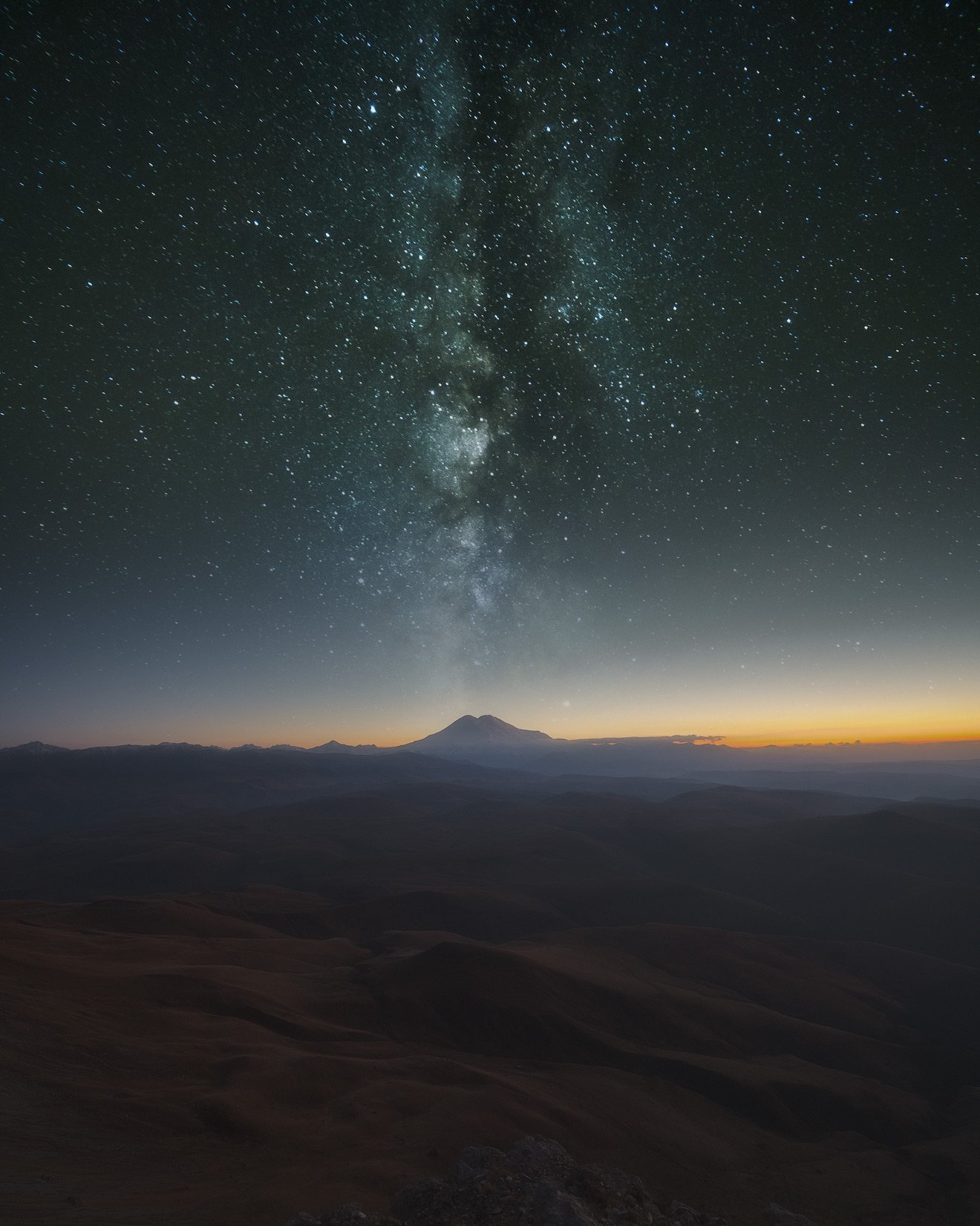 россия, кабардино-балкария, кавказ, природа, пейзаж, горы, плато, канжол, ночь, звезды, галактика, млечный путь, эльбрус, Оборотов Алексей