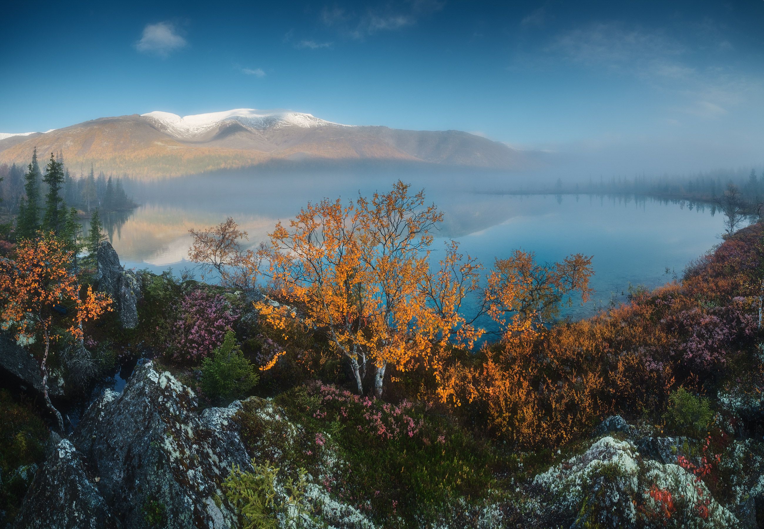 россия, мурманская область, кольский полуостров, ловозеры, заполярье, осень, природа, пейзаж, лесотундра, осень, рассвет, отражение, озеро, туман, Оборотов Алексей