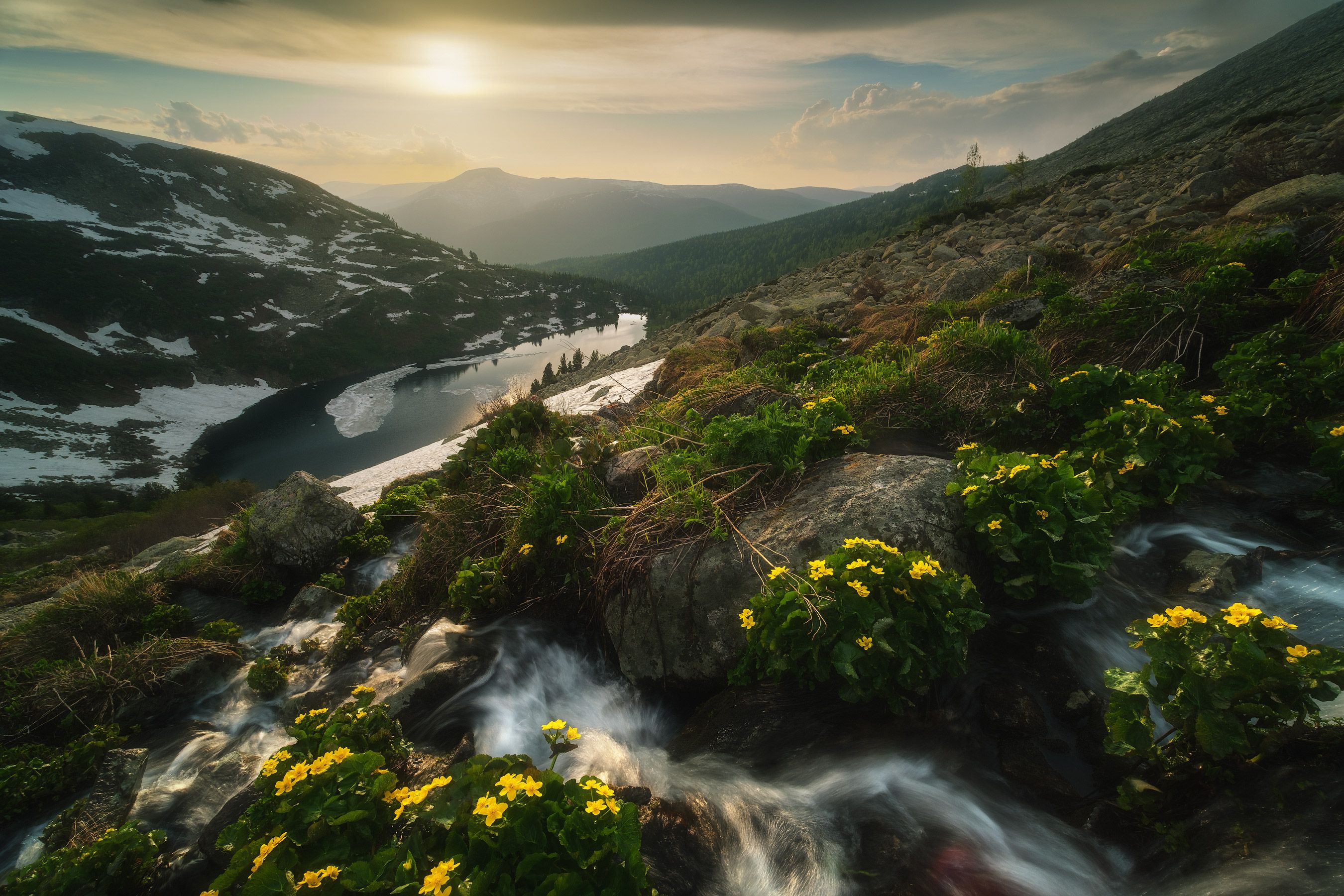 россия, сибирь, кузбасс, кемеровская область, поднебесные зубья, хребет, озеро, лето, природа, пейзаж, цветы, Оборотов Алексей