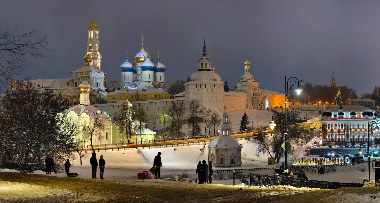 свято-троицкая сергиева лавра, сергиев посад, вознесенская улица, сергиевская улица, блинная гора, смотровая площадка, ночь, подсветка, сумерки, Денисевич Алексей