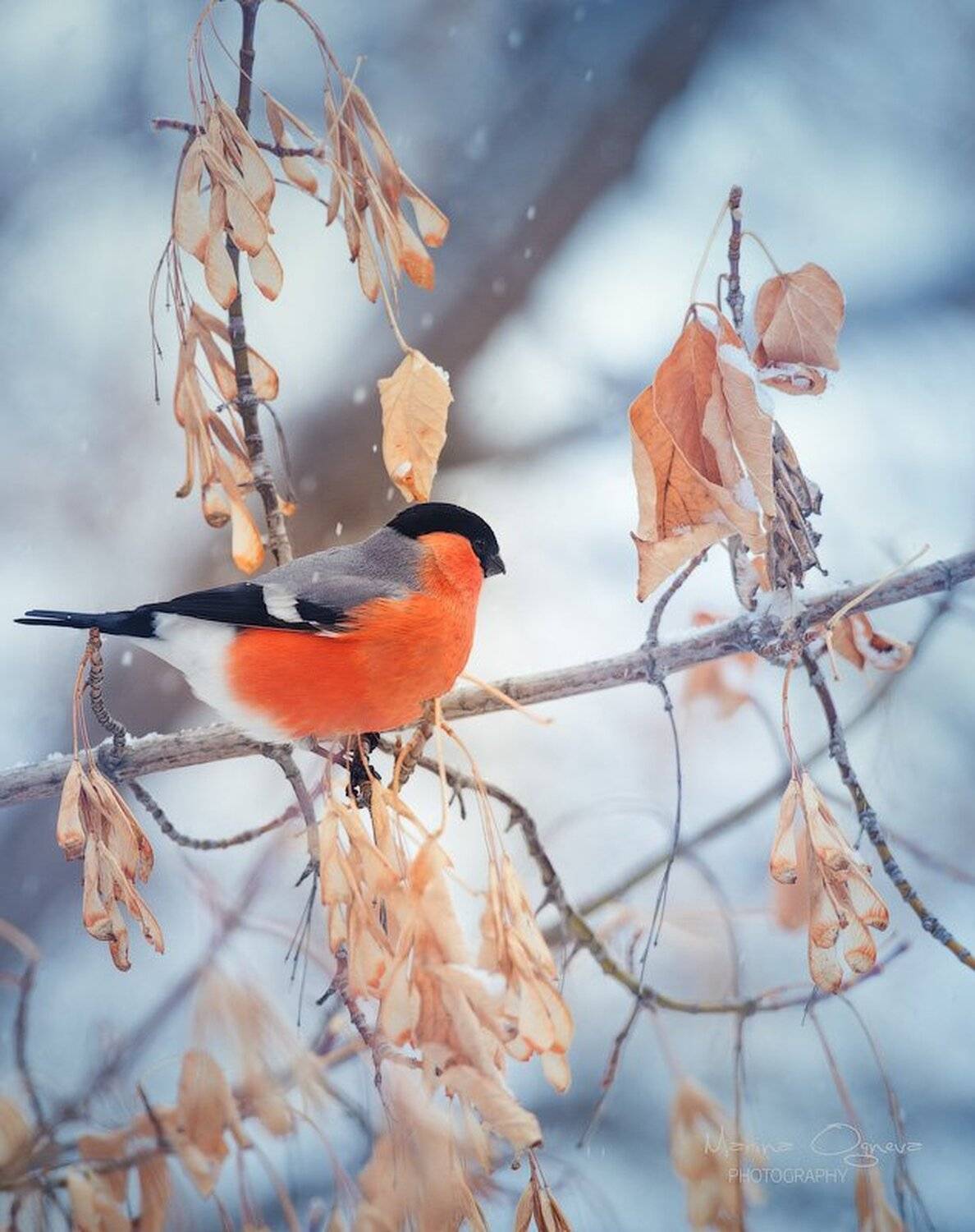 В воздухе уже витает запах весны! Правда еще холодно ... Но красногрудные сибирские фонарики продолжают радовать )) На вид такие милашки, но нрав у снегирей крутой )) Всех гоняют! Синичкам от них здорово достается ... )