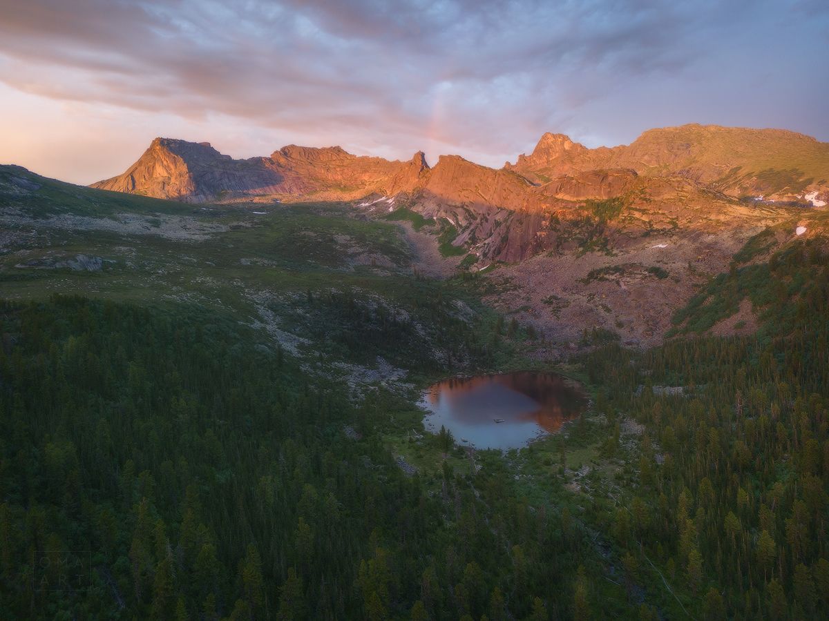 ергаки, радужное озеро, спящий саян, саяны, горы, озеро, тайга, лес, закат, Марина Огнева