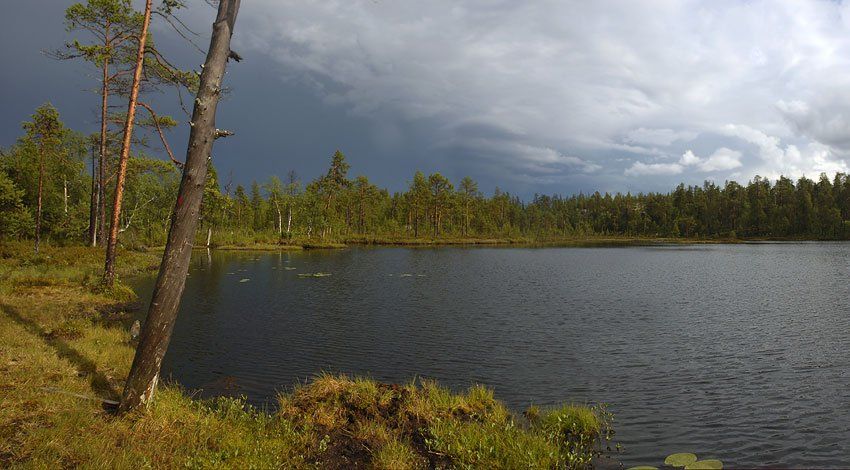 и небо и бережок с соснами..
