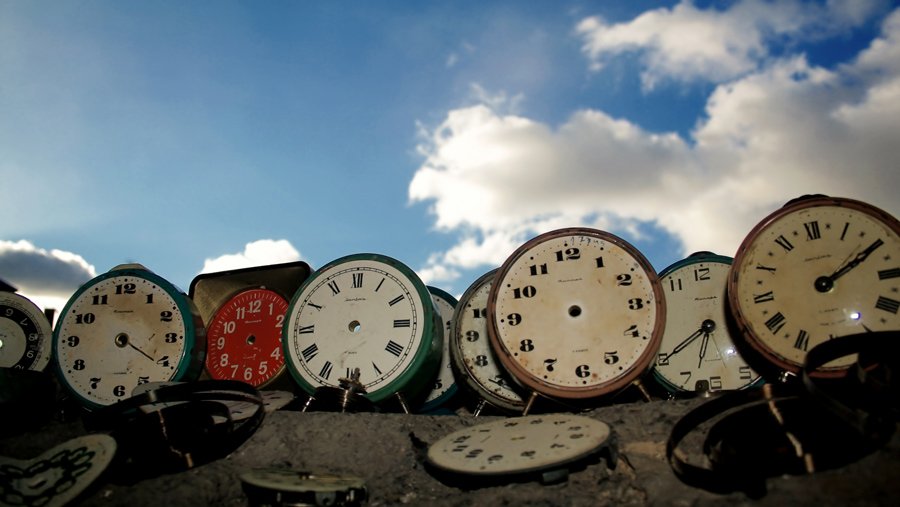 Вовсе не фотошоп. Это где-то в окрестностях Минского тракторного завода. Бродил по заброшенным домам, и вот в одном нашел кучу старых часов (на фото далеко не все). Пришел на следующий день, выставил их на подоконник и клацнул.