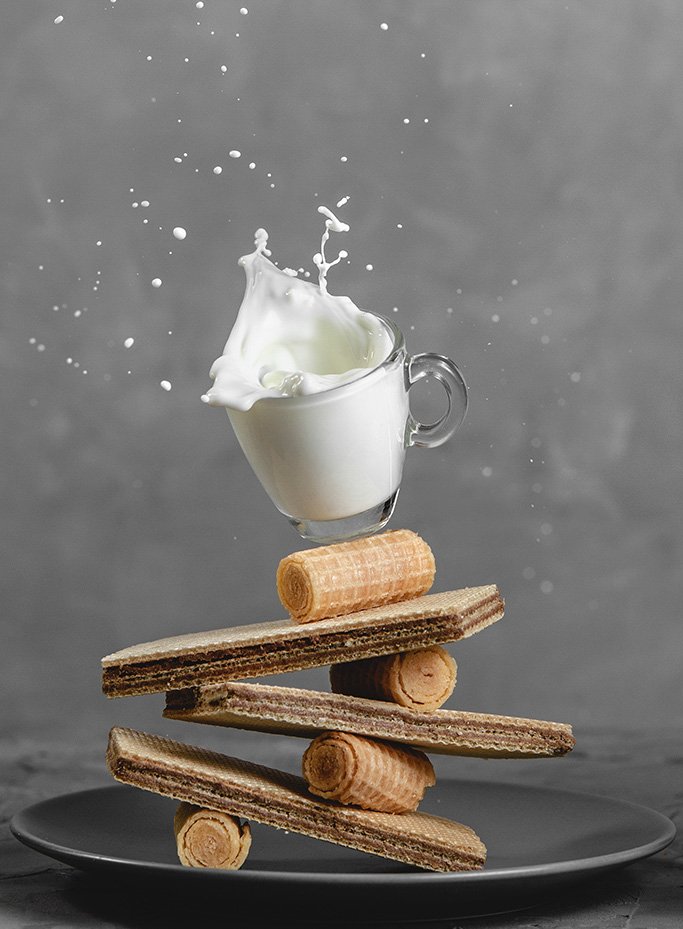 фудфото, еда, молоко, чашка, вафли, сладости, всплески, брызги, Оксана Гимранова