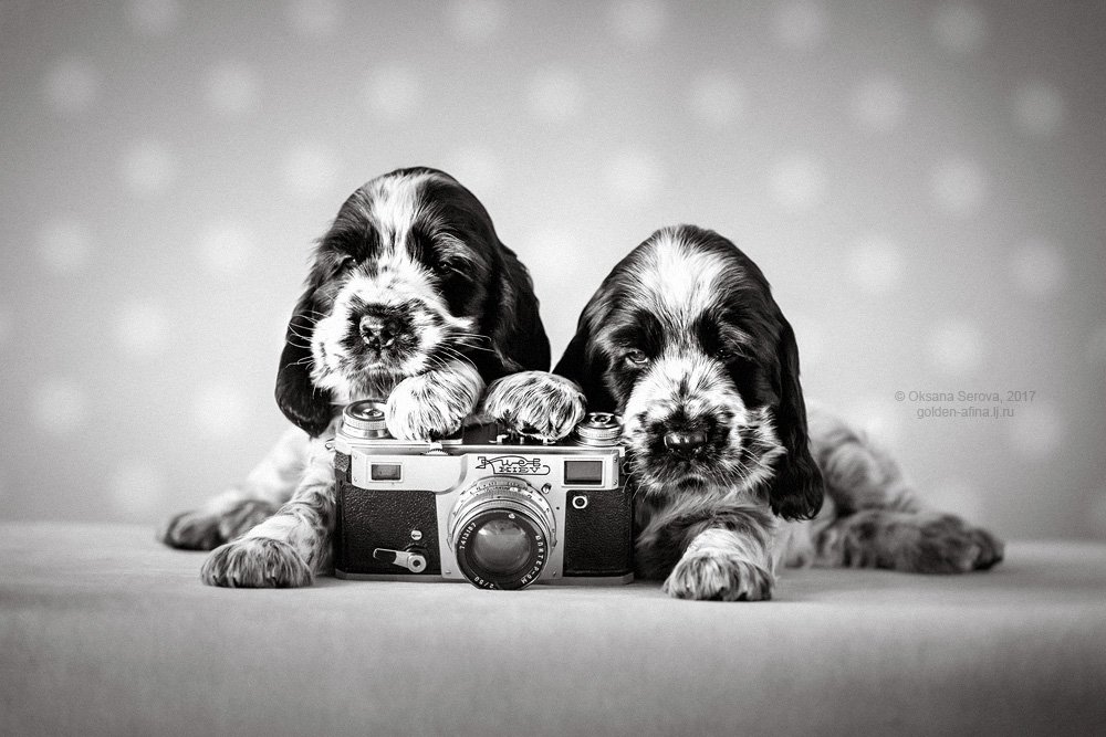 собака, щенок, спаниель, братья, фотоаппарат, Оксана Серова