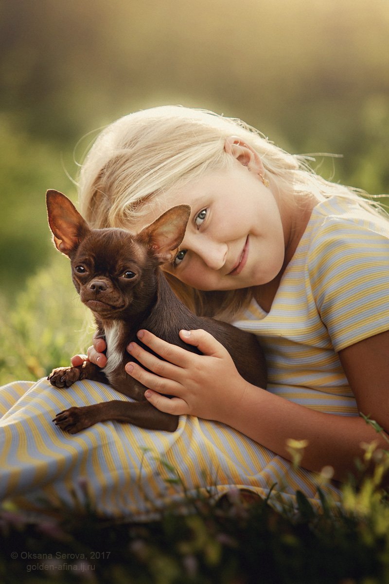 дети, девочка, лучшие друзья, чихуахуа, собака, лето, Оксана Серова