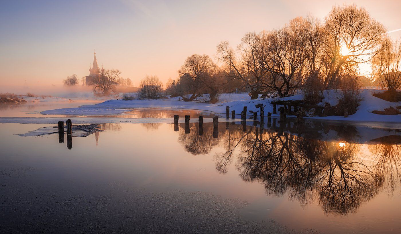 Март, 2017, утро, рассвет, сонце, церковь, река, Олег Белый