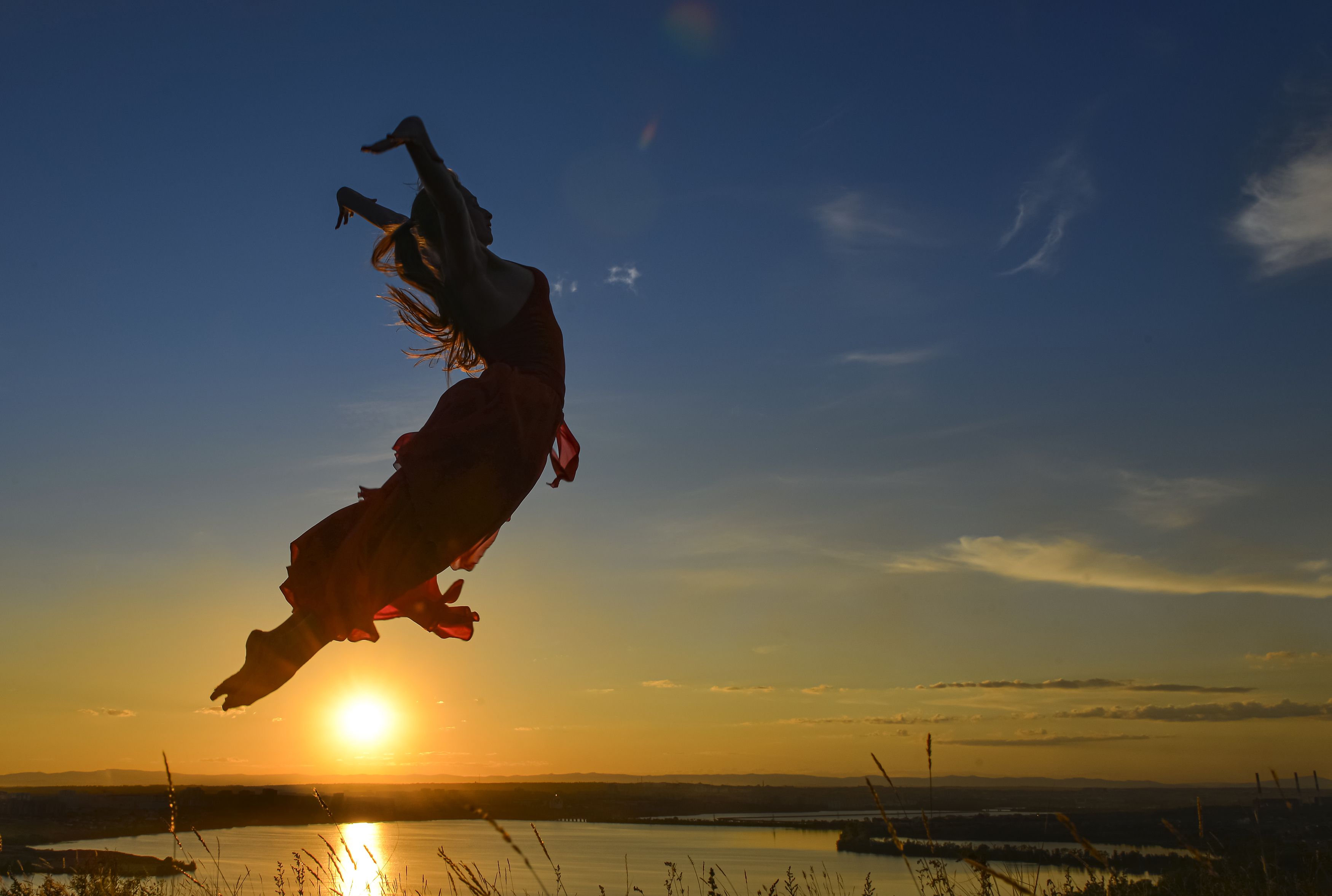 девушка. закат. прыжок., Урасов Олег