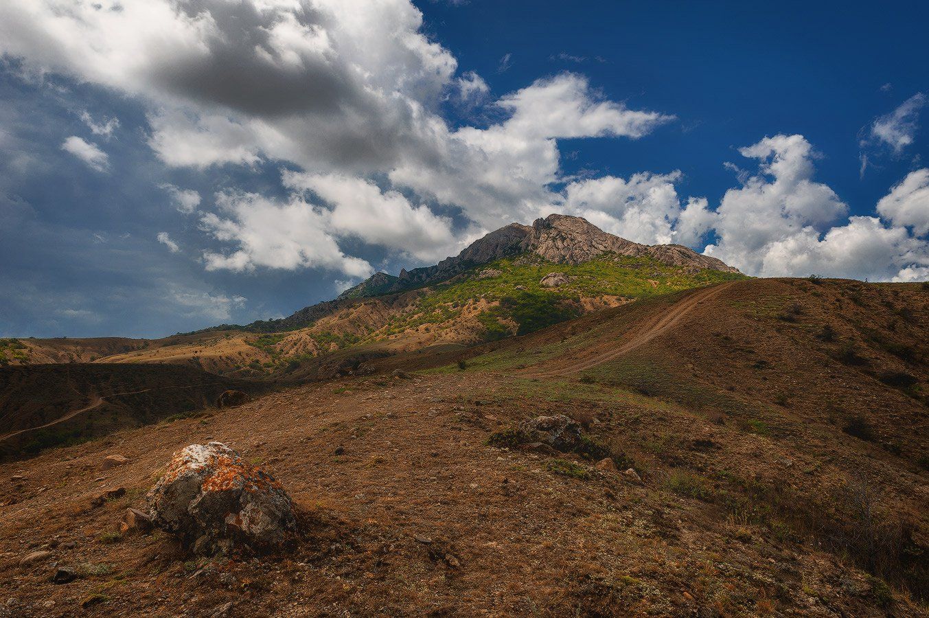 Кадр хорошо построен, солнце не убивает работу, нет пересветов, хорошо легли тени от облаков, камушек на ПП нравится, дорога, уводящая вдаль (перспективно), цветовое решение - нет никаких сумасшедших цветов- и вообще, общее впечатление ( а я прежде всего именно так оцениваю работы, а потом уж все остальное) очень приятное.
