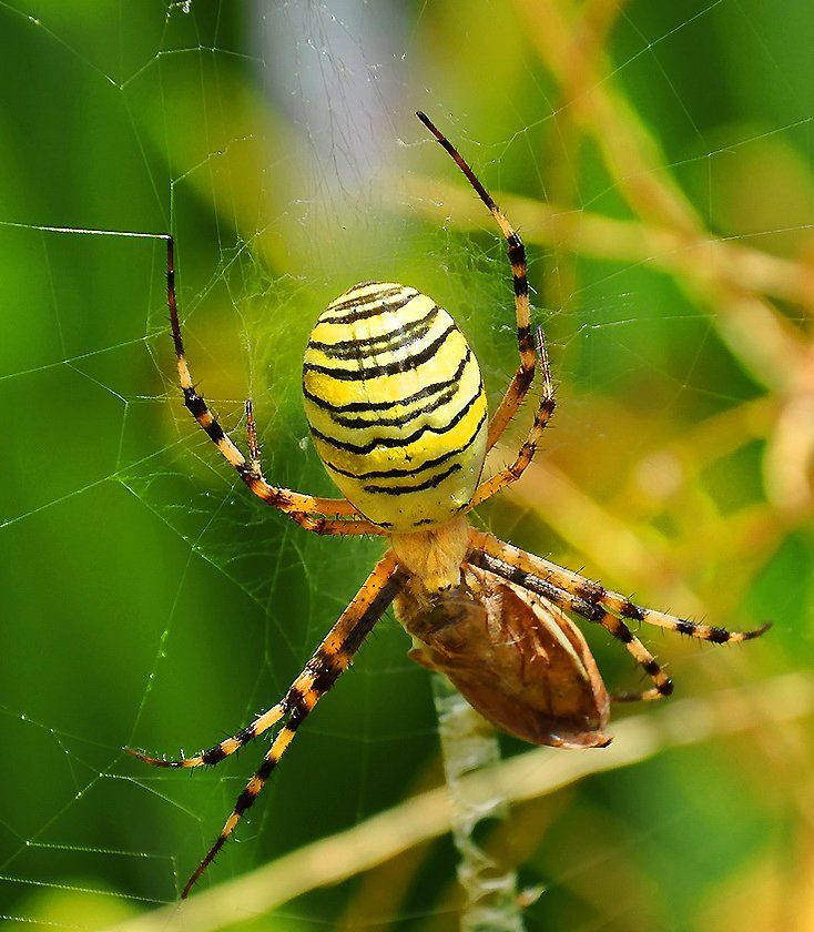 Аргиопа Брюниха- одна из эффектных моделей.Но мертвечину не ест.И опять кислотные цвета... (Грустно...)