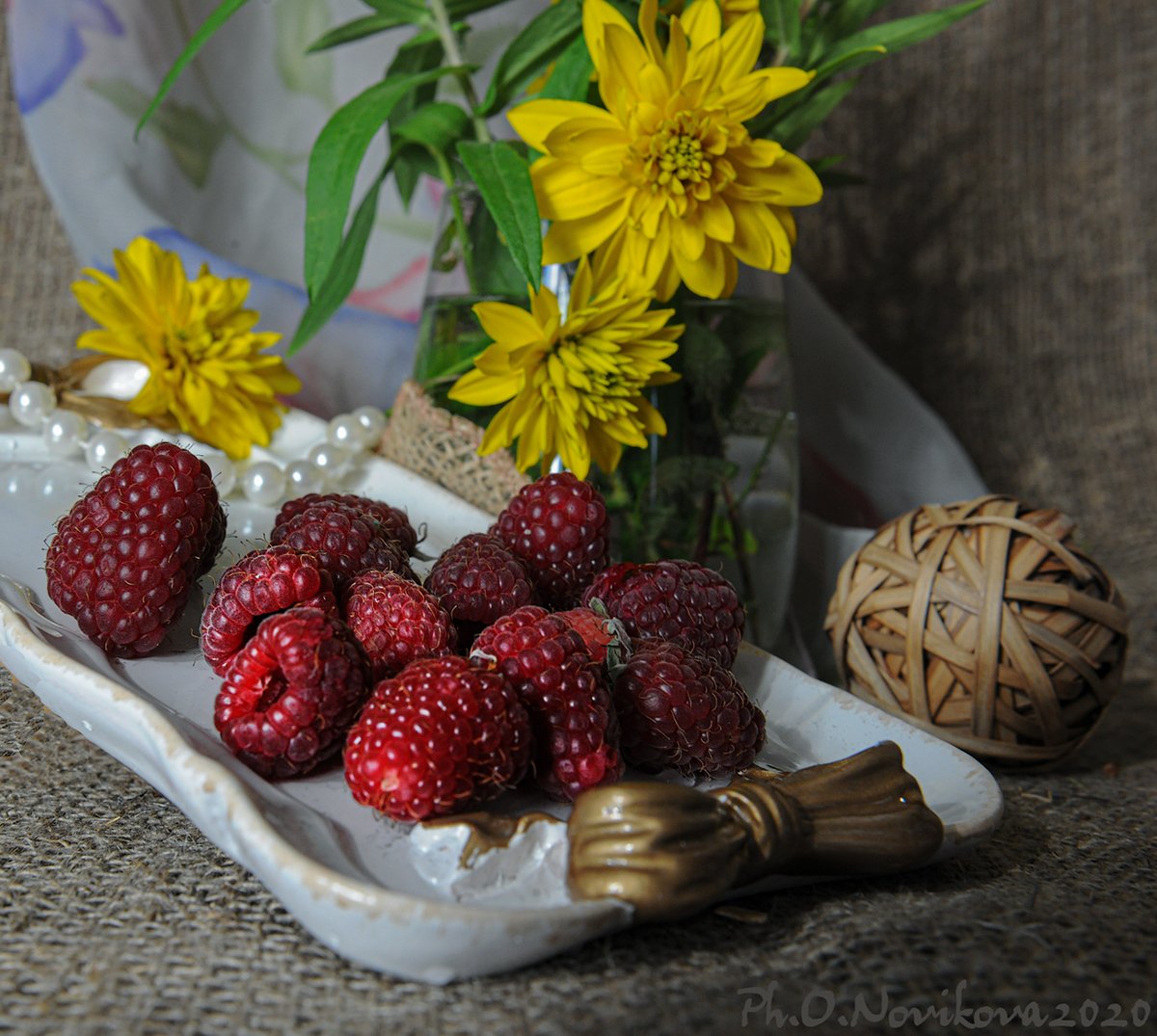 малина,ягоды,жемчуг,цветы, Ольга Новикова