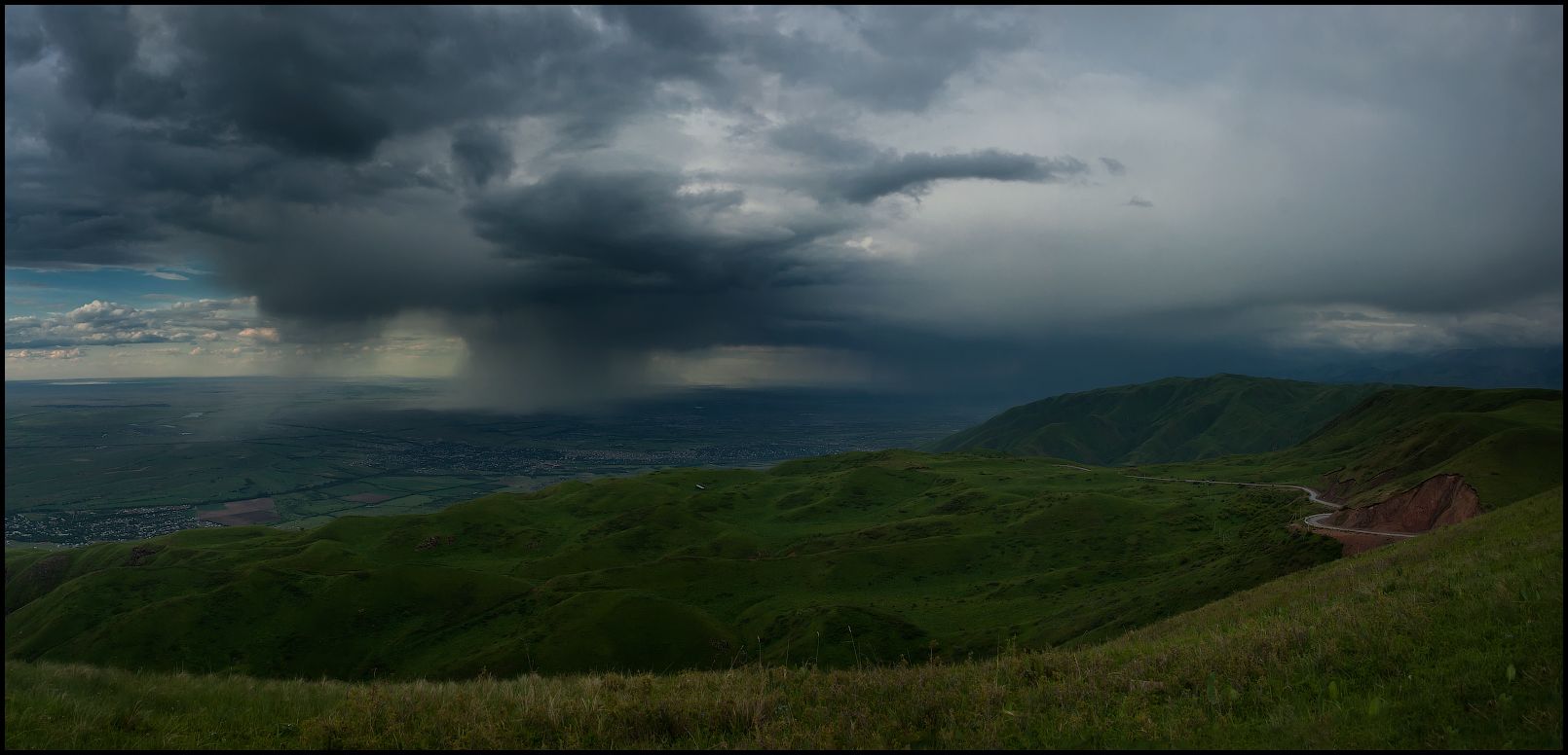Чернильные тучи и фиолетовый оттенок на облаках заднего плана. НМВ, более соответствует реальности 4-я картинка, хотя обе фотографии сняты скорее всего одновременно с небольшим изменением точки съемки