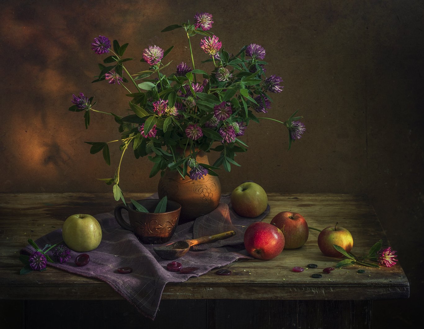 натюрморт,лето,яблоки,клевер, Елена Рубинская