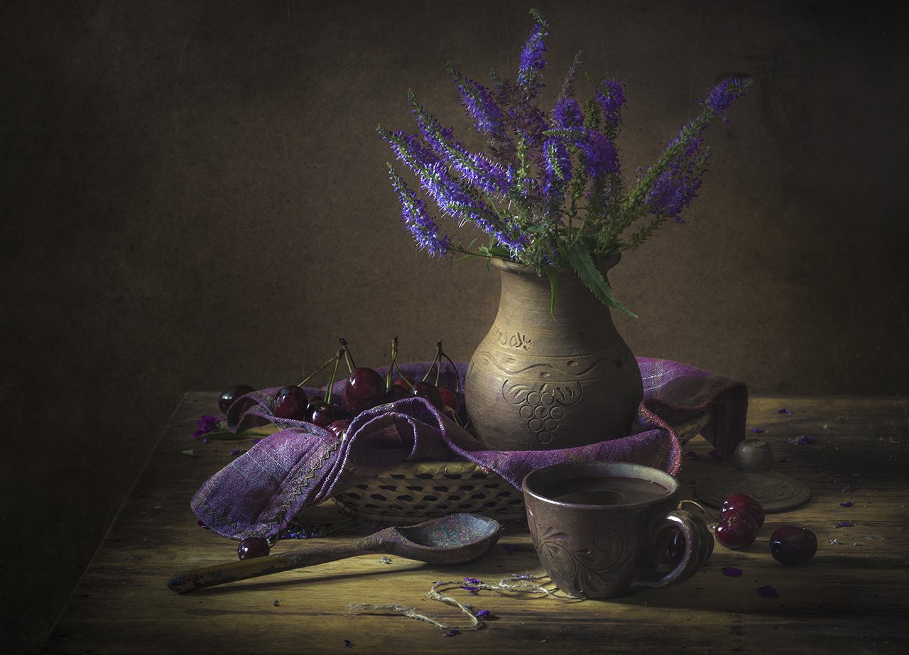 натюрморт,черешня,букет,лето, Елена Рубинская