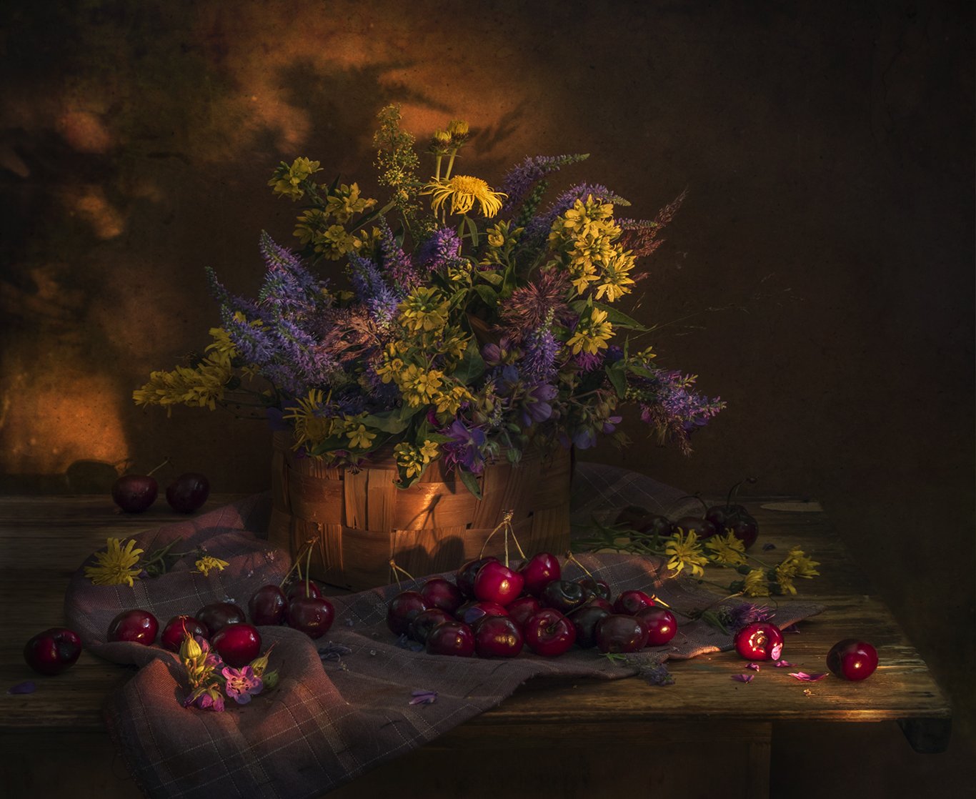 натюрморт,цветы,черешня,вечер,солнце, кострома, Елена Рубинская
