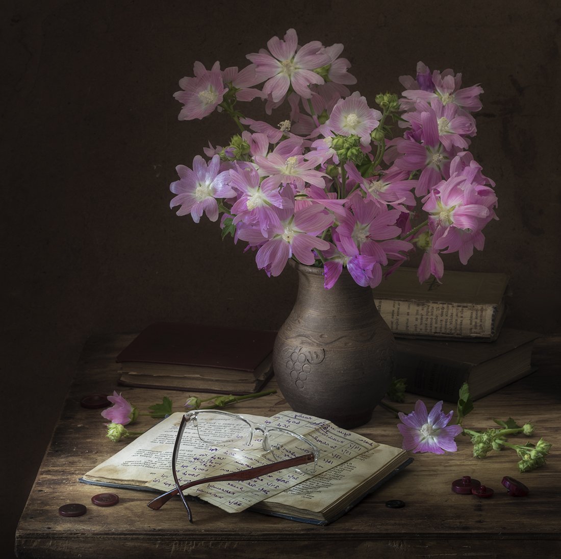 натюрморт,мальва,хатьма тюрингенская, Елена Рубинская