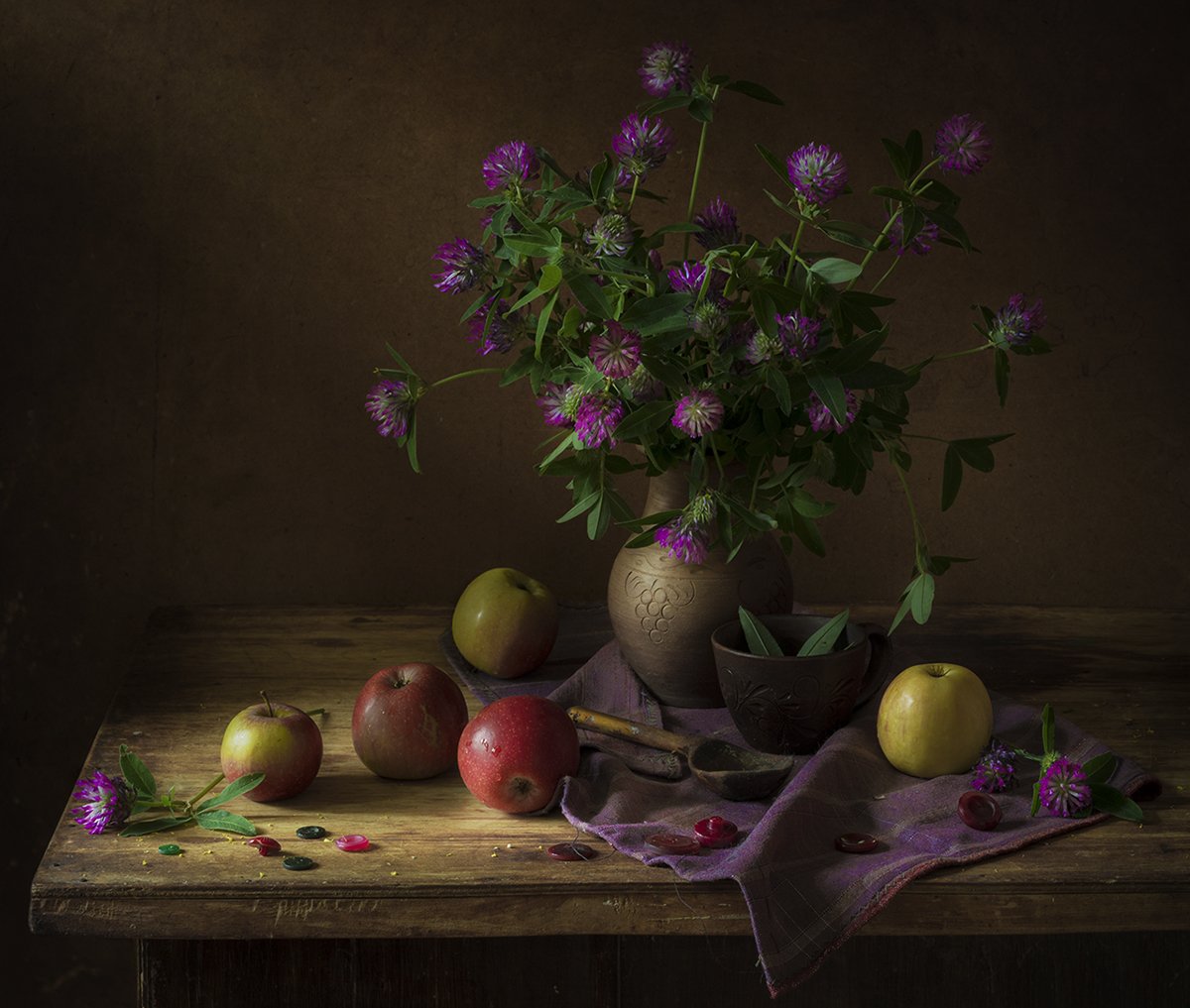 натюрморт,яблоки,клевер, Елена Рубинская
