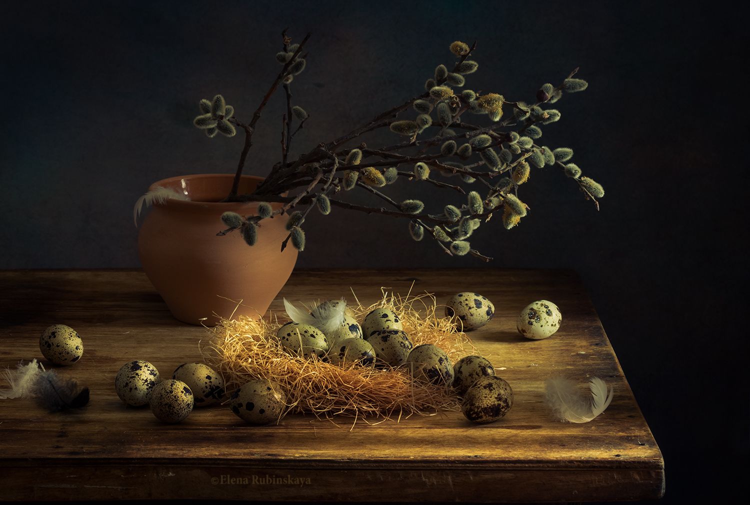 натюрморт, верба, яйца, перепелиные яйца, кострома, вербная неделя, Елена Рубинская