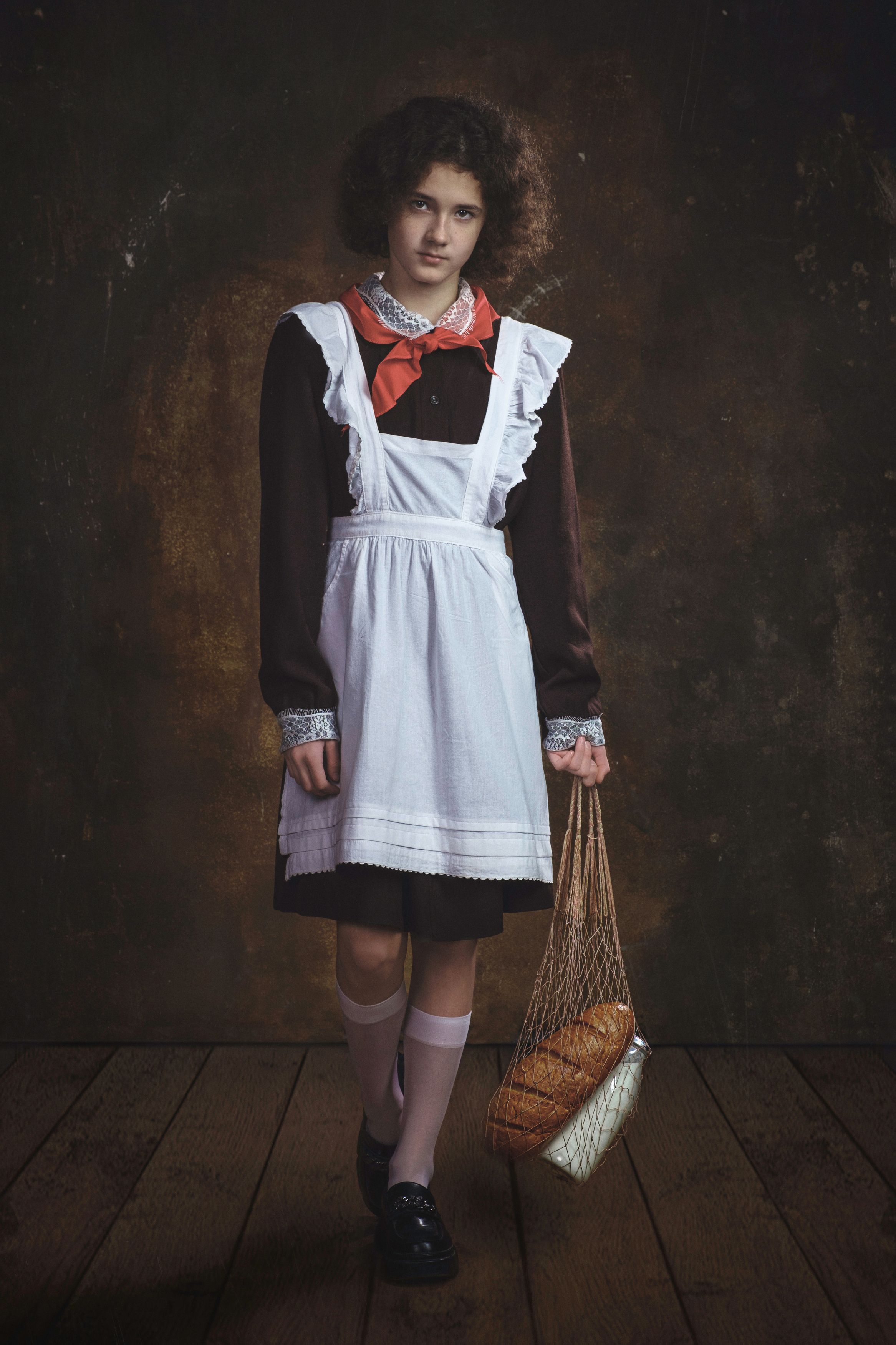 Хорошо фото сделал. И по цветам, и по аксессуарам и даже лёгкая грусть школьницы в тему!. Молодец)