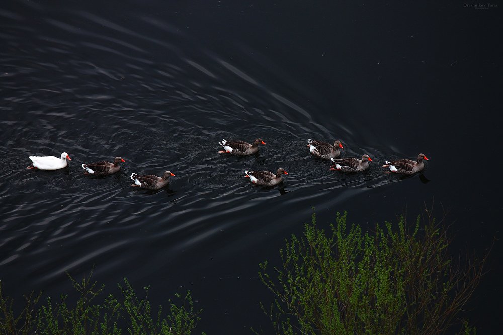 пейзаж,природа,птицы,осень,река,гуси,стая, Taras
