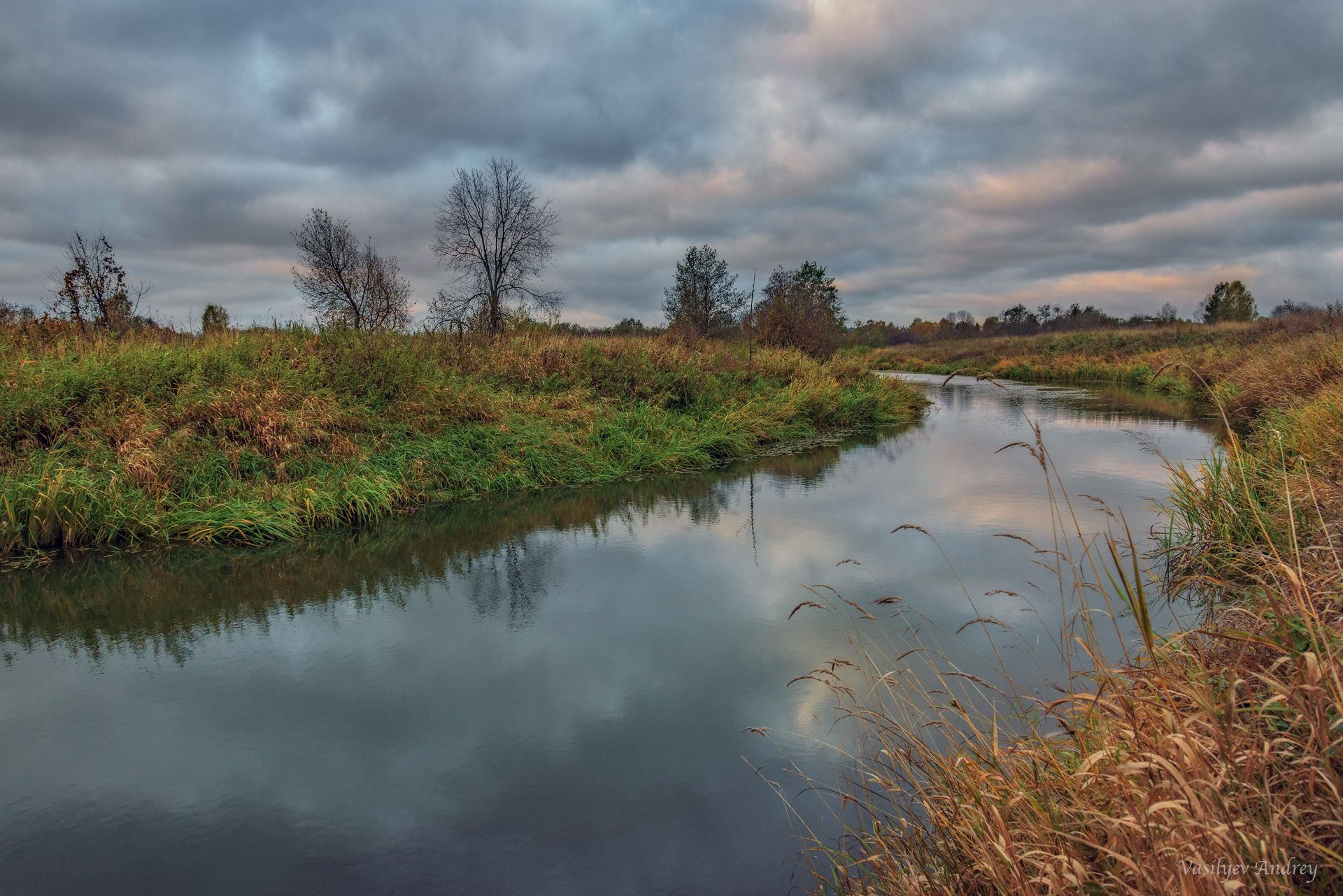 осень, утро, небо, ярославская область, облака, река устье, Andrey Vasilyev