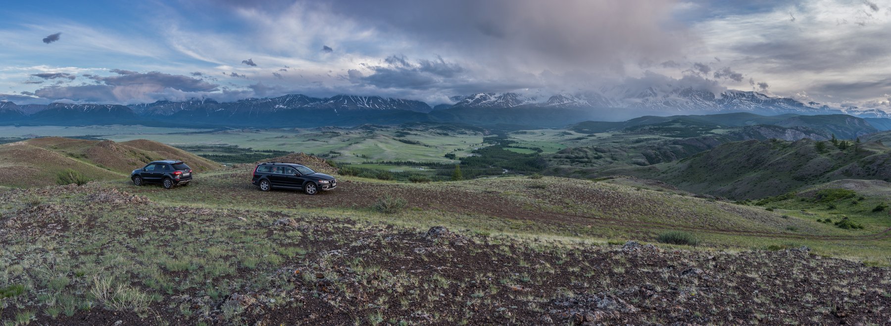 горы, небо, облака, лето, Алтай, Северо-Чуйский, Курай, природа, пейзаж, панорама, путешествие, автомобили, Сергей Ослопов