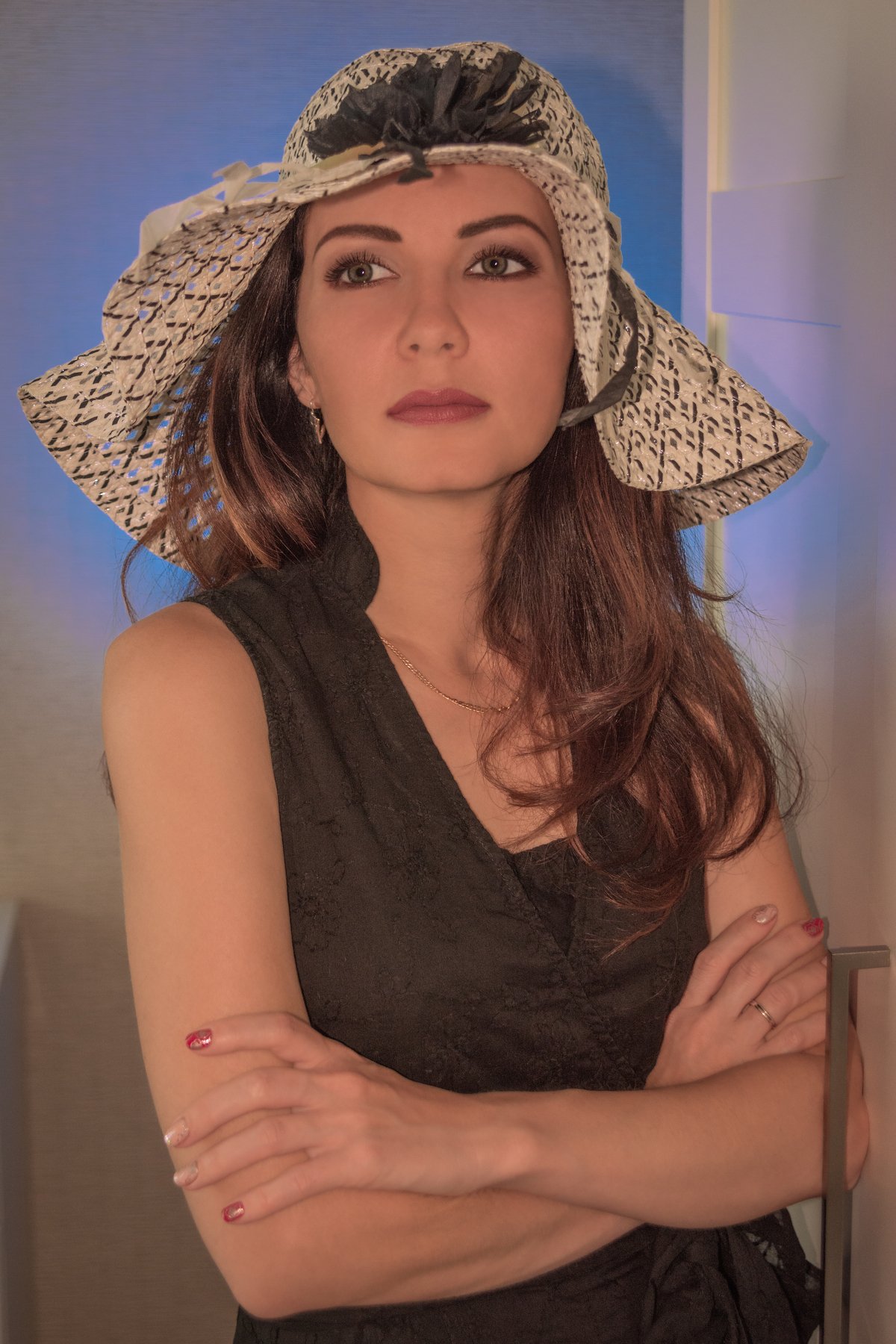 девушка, модель, фейшин, глаза, волосы, лицо, губы, взгляд, шляпа, свет, красота, студия, Сергей Ослопов