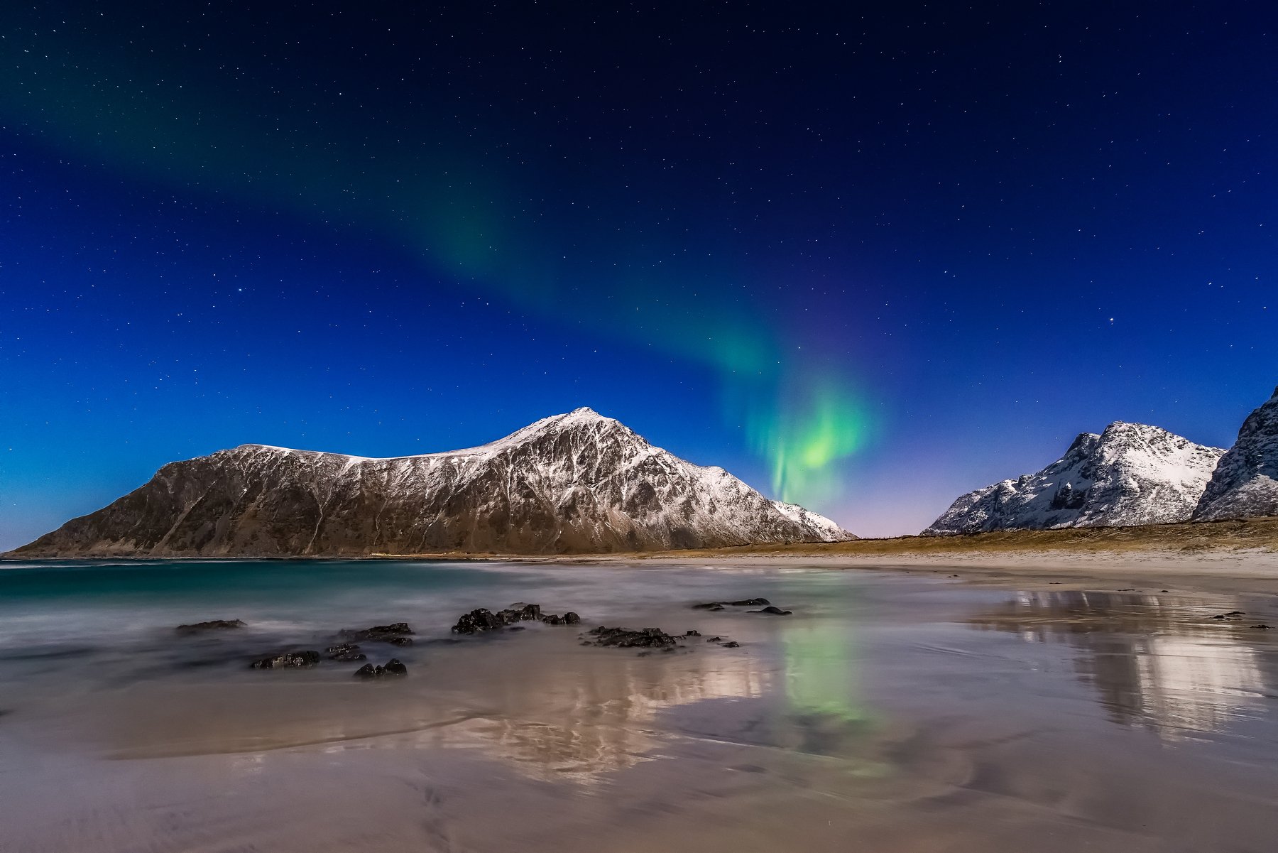 aurora borealis,norway,lofoten,mountains,sea,nightscape,seascape,zeiss milvus 21mm,nikon,travel,reflectionsky winter,, Felix Ostapenko