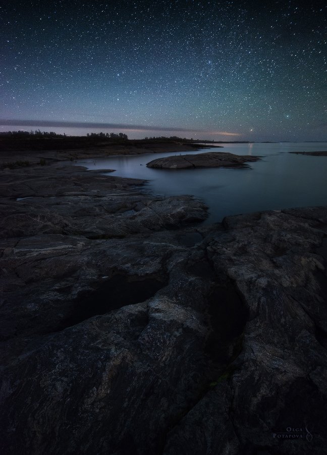 Жить на севере здорово наверное ещё потому, что успеваешь соскучиться за лето по настоящему звёздному небу. Конец августа - граница между временами года, гладь Ладоги - между Землёй и небом. А я лишь сторонний наблюдатель двух ярких звёзд в созвездии Ориона.