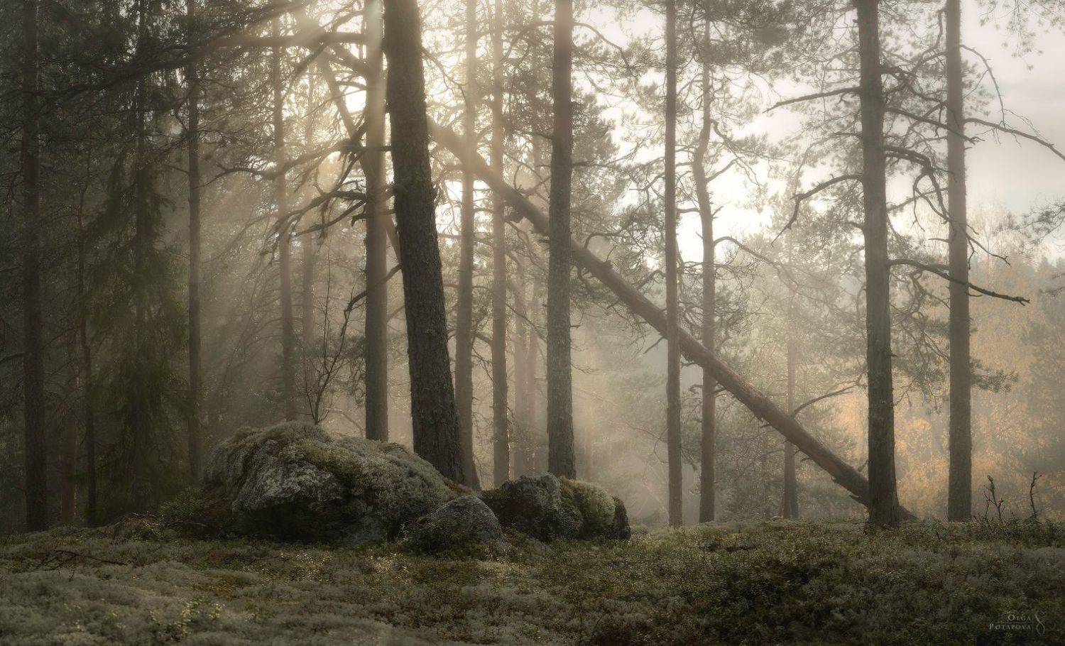 карельский перешееккарелияленинградская областьдремучий лессеверный лесв лесах под выборгомпригороды петербургатуманпервозданная природалучи через тумансейдгром-камень