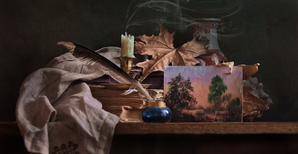 Чернильницу в фокус хочется и , может быть, ракушку немного правее.