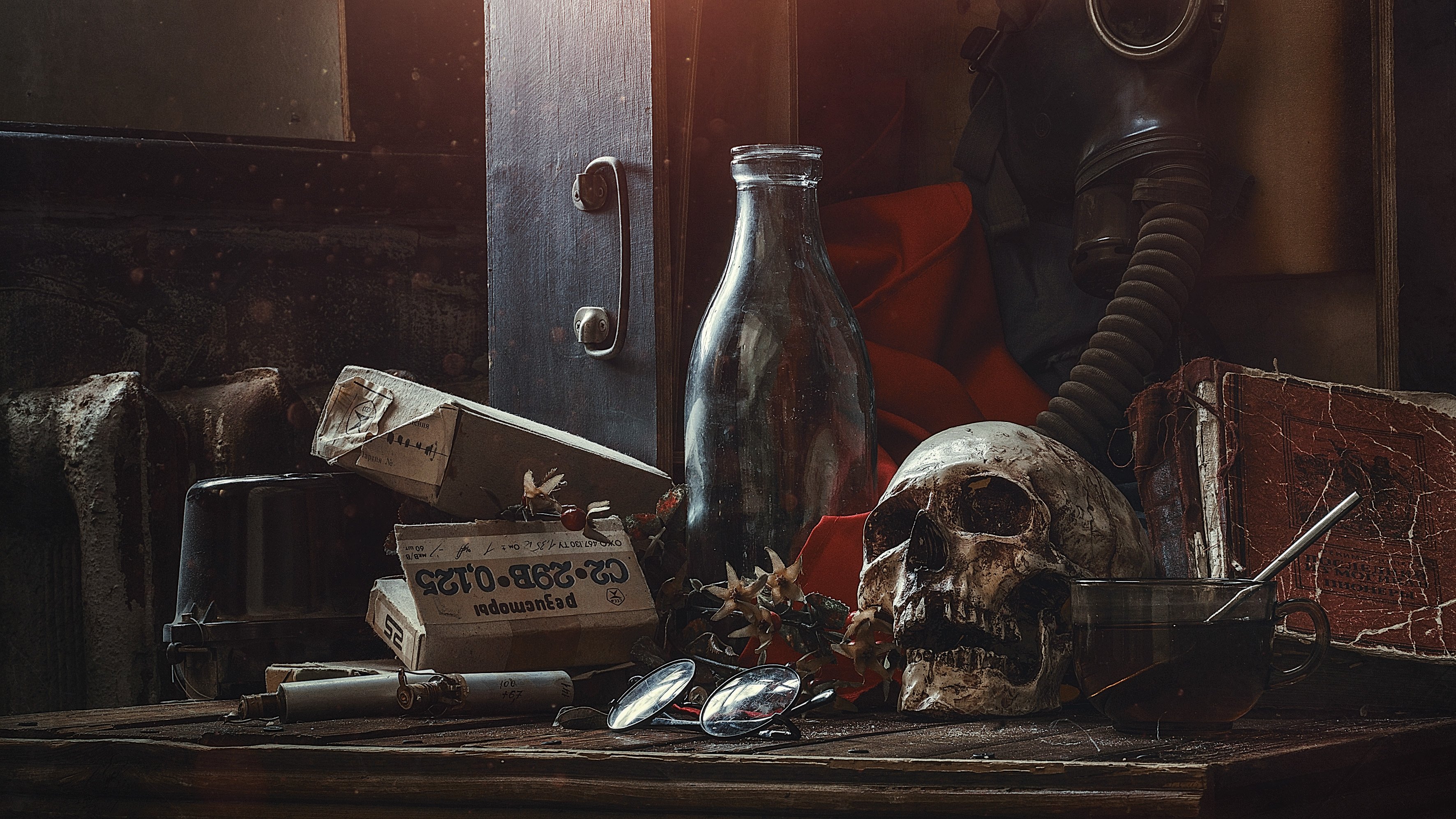 Череп - собеседник по размышлениям над бренностью бытия, Или владелец хозяйств электрик по совмещению сторож на кладбище.