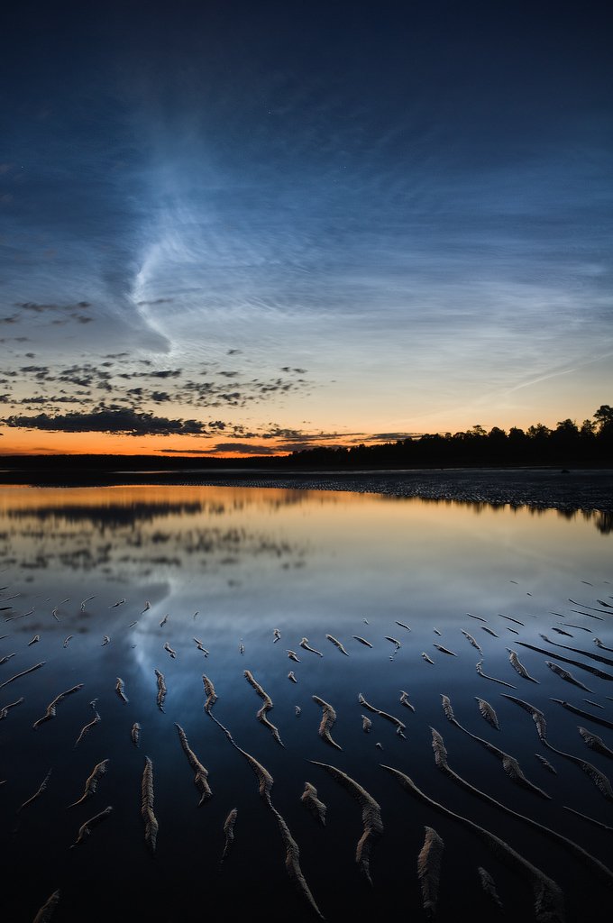 белое, море, серебристые, облака, ночь, sea, clouds, night, Дмитрий