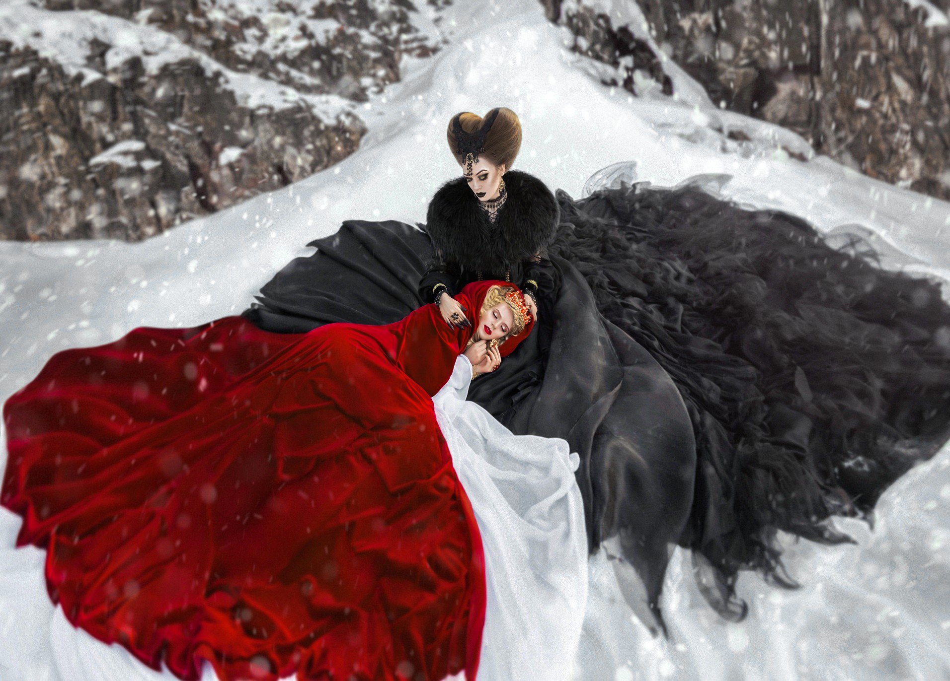 спящая красавица, сказочная фотосессия, сказка, сказка в фото, артфотография, зима, ведьма, принцесса, чёрное и красное, средневековье, волшебство, магия, волшебная фотография, артфотограф, Софья Ознобихина