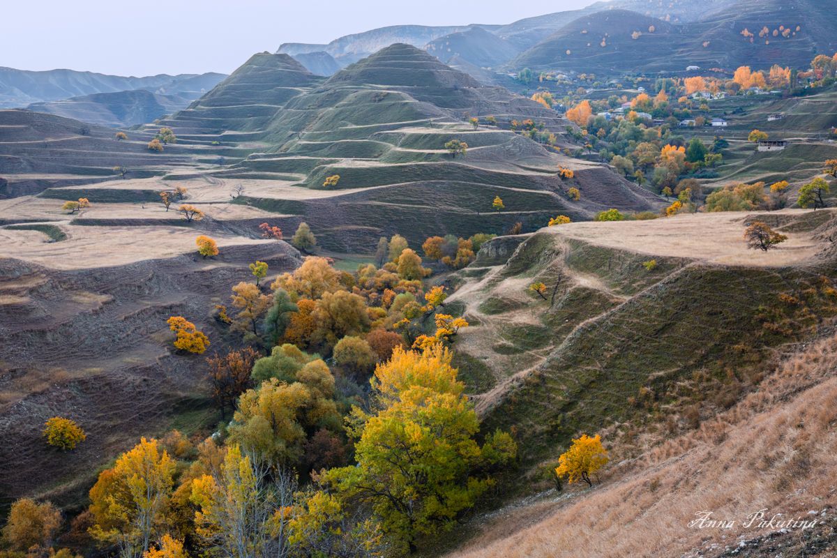 Это действительно, эти плато – остатки террасного земледелия, которое применялось в Дагестане. Сейчас в основном эти террассы уже не используются, видели совсем немного плодовых садов.