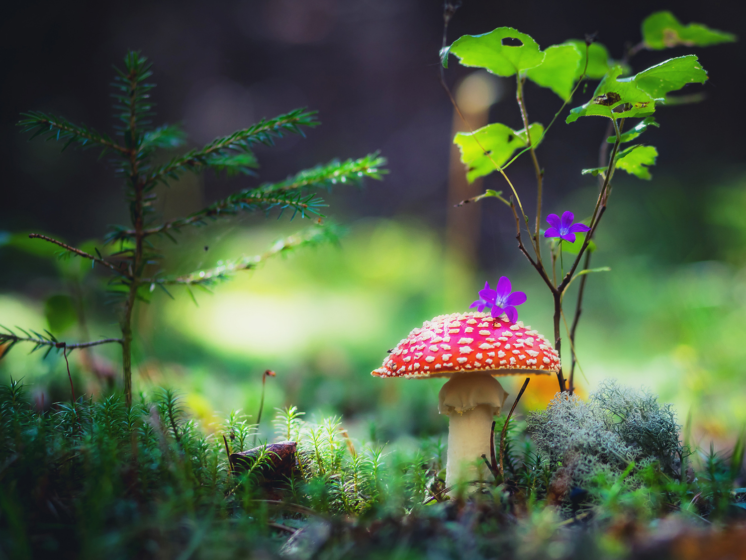 гриб, мухомор, осень, сказка, макро, мох, трава, поляна, лес, охота, цветы, ярко, наряд, шляпка, Панагушин Сергей