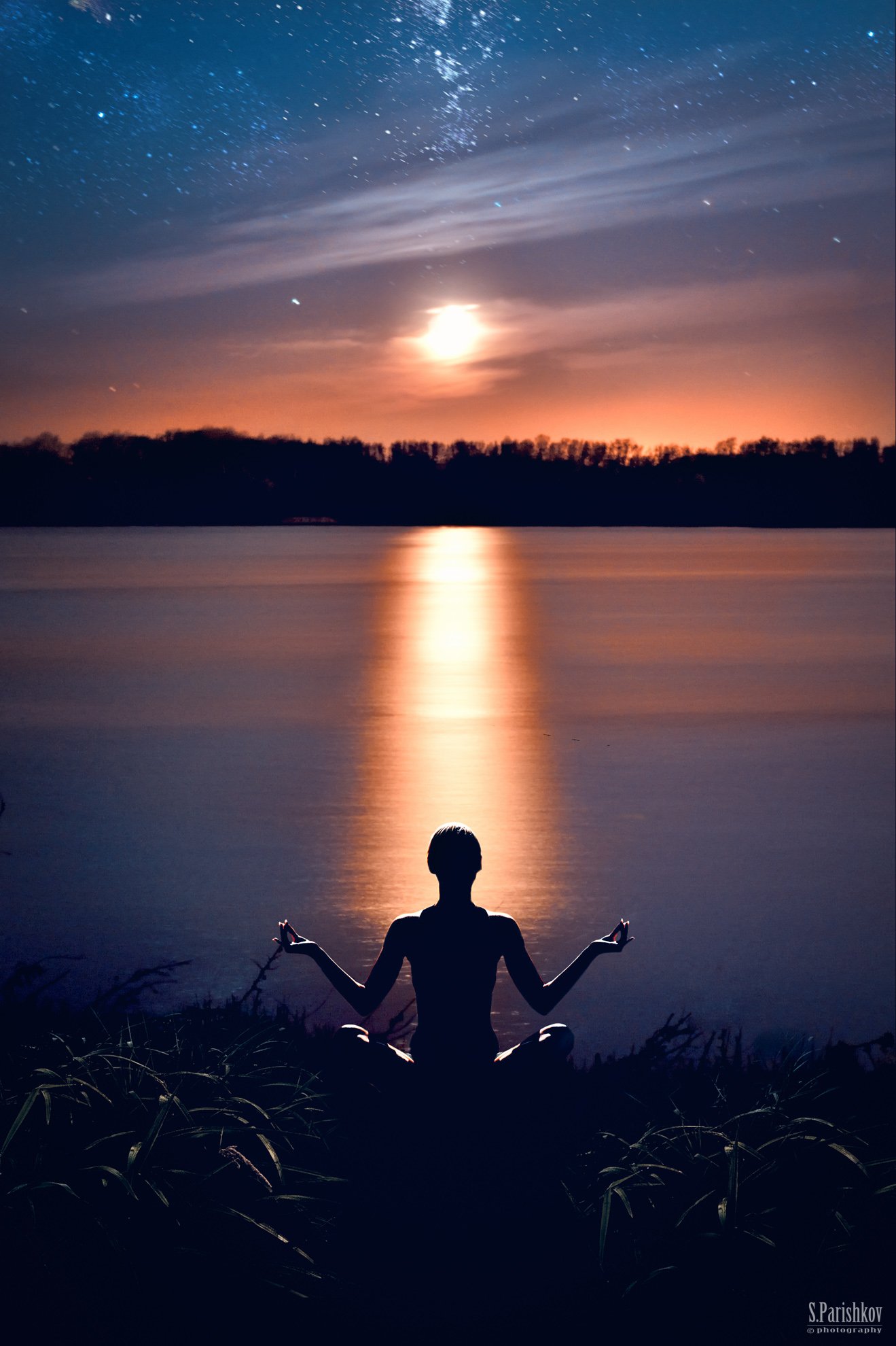 Lake, Meditacion, Moon, Night, Parishkov, Road, Scy, Stars, Дорога, Звезды, Луна, Медитация, Небо, Ночь, Озеро, Парышков, Парышков Сергей