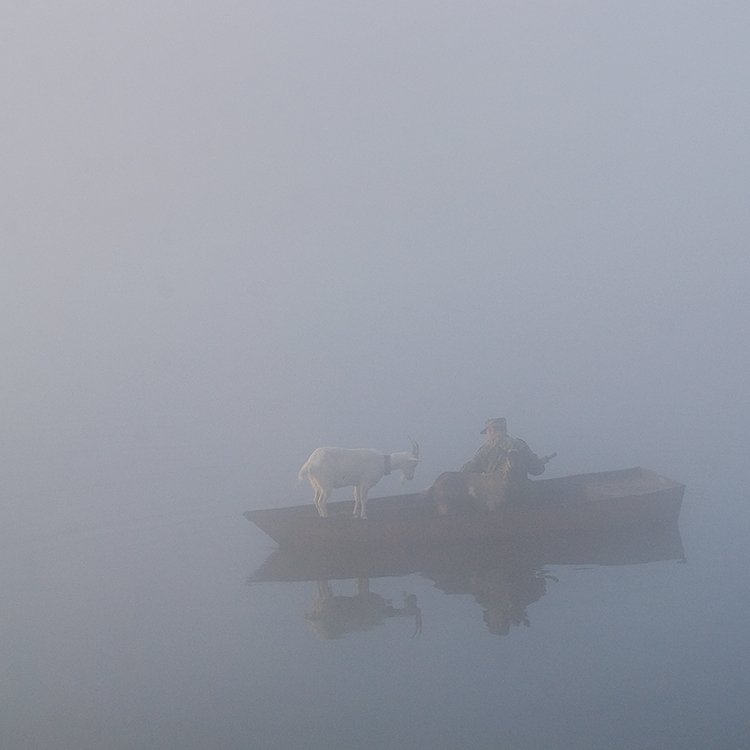 осень, рассвет, туман, лодка, мужик, козы,  тишина, Андрей Алексеев