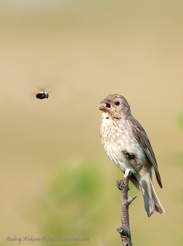Всё достаточно прозаично, Динара. Я снимал эту самку чечевицы медленно подходя поближе, что бы не спугнуть. Снимал практически непрерывно, насколько позволяла скорострельность трёхсотки. Этого подлетающего овода я, конечно, не видел. Уже после просмотра отснятых кадров я обнаружил такой подарок :) Овод был менее чётким, так как был не в ГРИПе, признаюсь, я его немножко подправил, добавил резкости в фотошопе. Так что это один из ста кадров, остальные уже не нужны :)