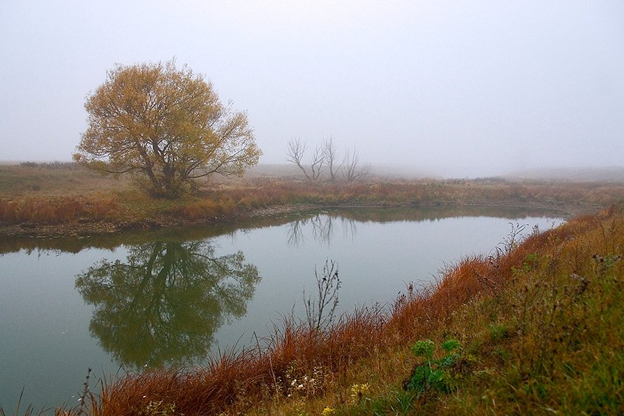 замечательное сочетание красок, особенно нравится жёлтый оттенок дерева и более зелёный - его отражения :)