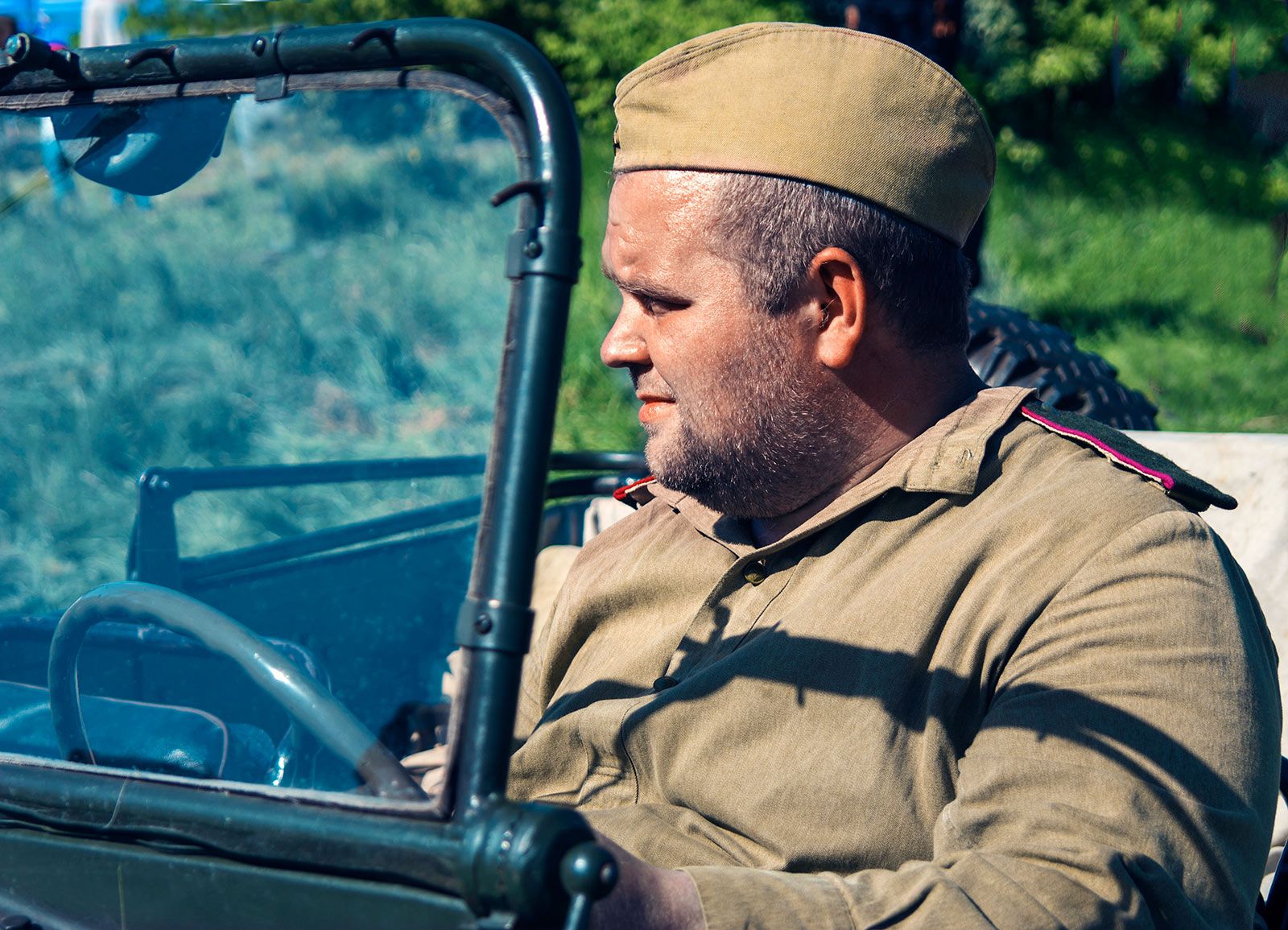 Странная реконструкция, однако. Неуставные хромовые офицерские сапоги у рядового солдата, на автомате дамский поясной ремешок. Бусики на левом запястье у артеллириста. Заигрались в войнушку взрослые дядьки, смешно :(