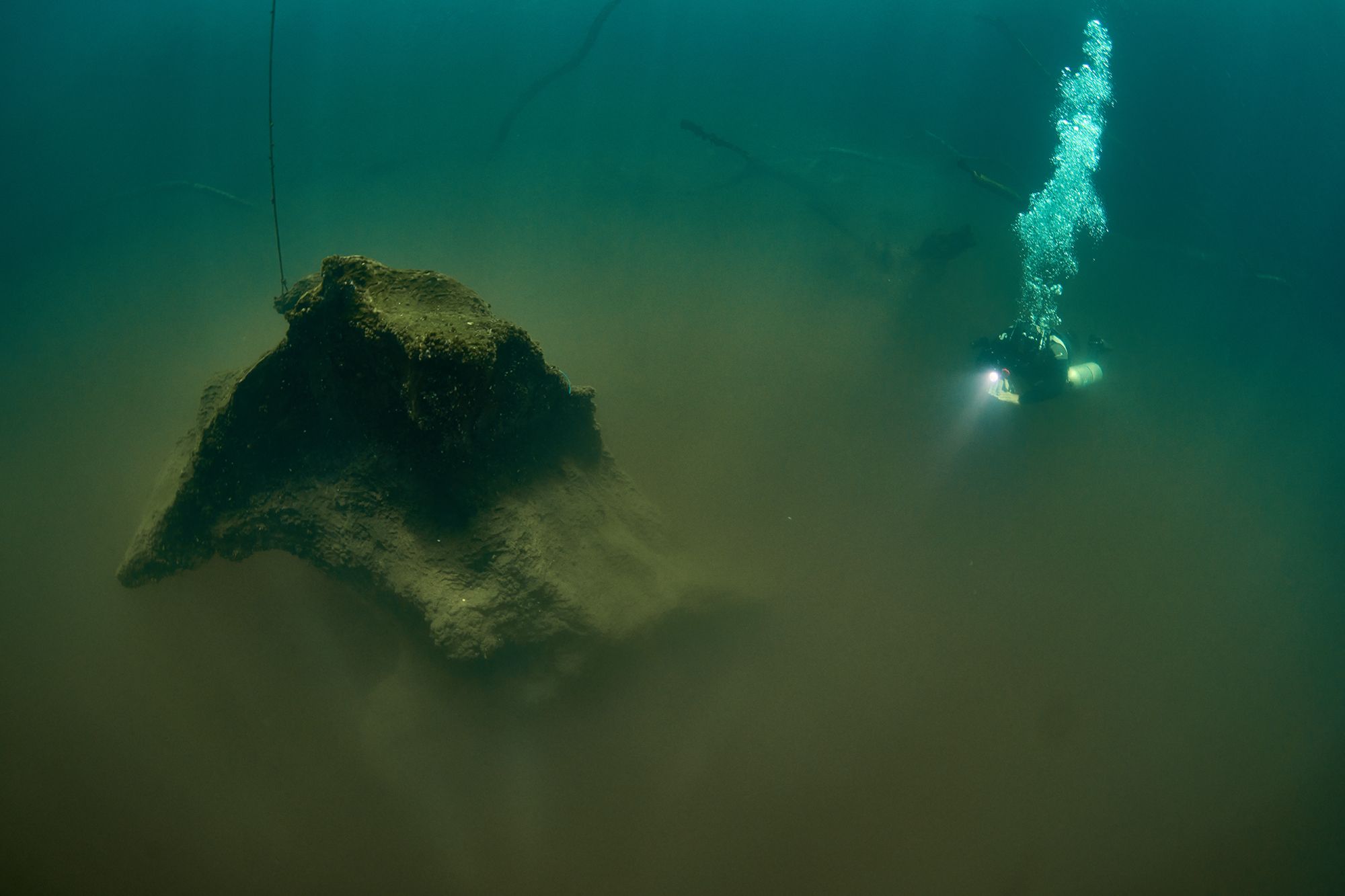 Это не фотошоп. Так выглядит облако сероводорода в сеноте. Что интересно, когда его проныриваешь, ярко чувствуешь этот газ носом, не смотря на то, что дышишь из баллонов.